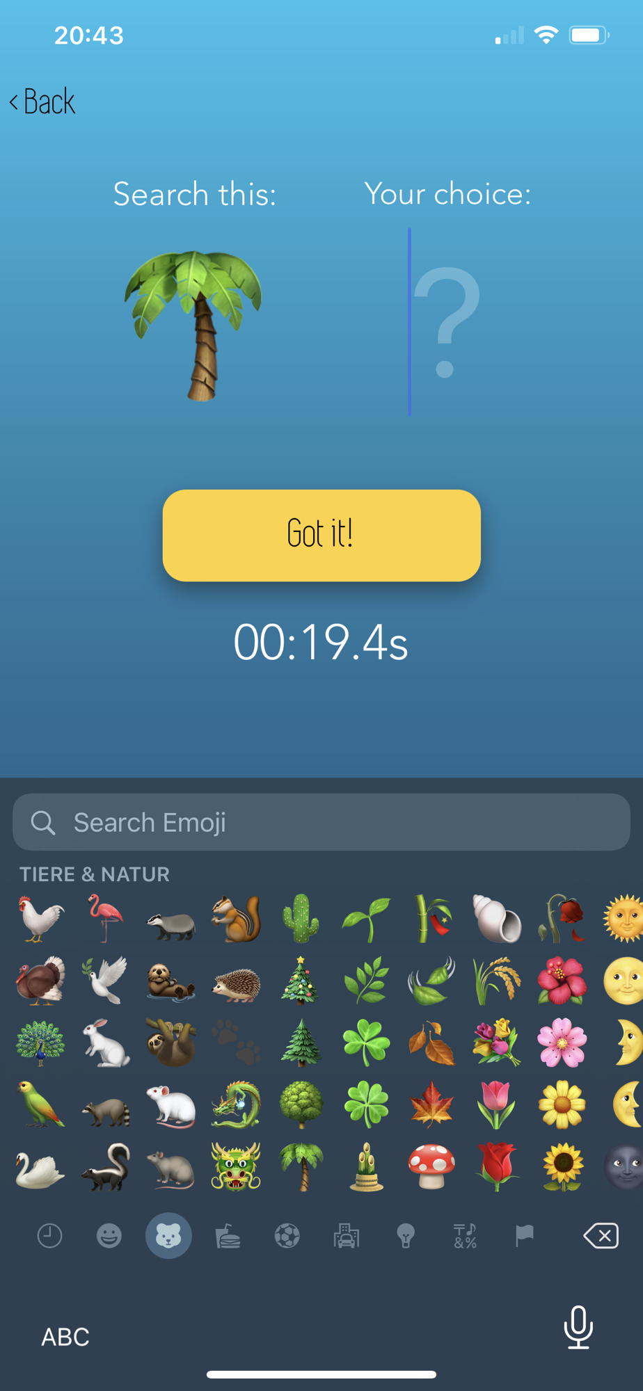 Find the emojis before your opponents do. Play against your friends and show your search skills.