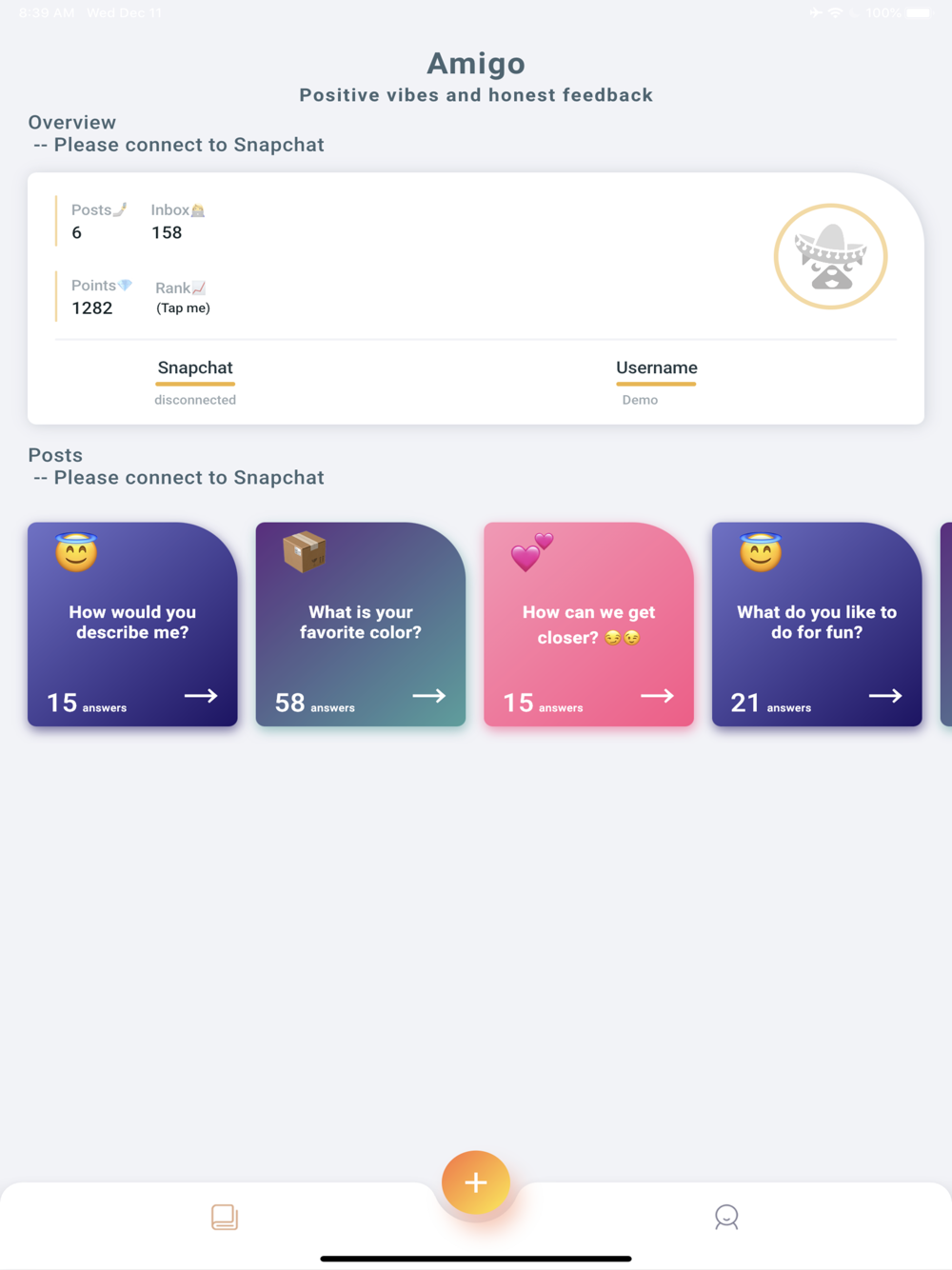 See what your friends think! Amigo allows you to post questions on Snapchat and receive anonymous feedback! <3