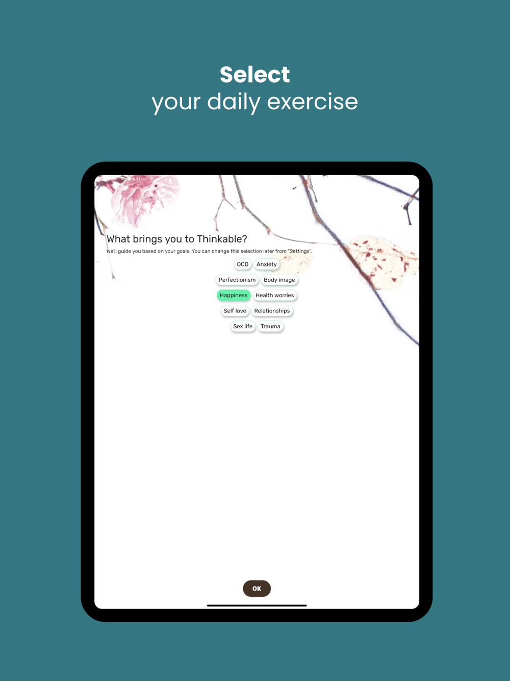Created by Dr. Guy Doron, clinical psychologist, OCD and mHealth expert, and backed by research, Thinkable enables you to improve your thinking habits, cope with anxiety, boost confidence and mood by training for just 3 minutes per day. Try this effective mental wellness app right now for FREE!