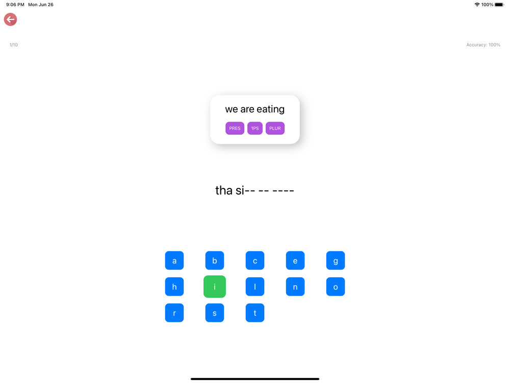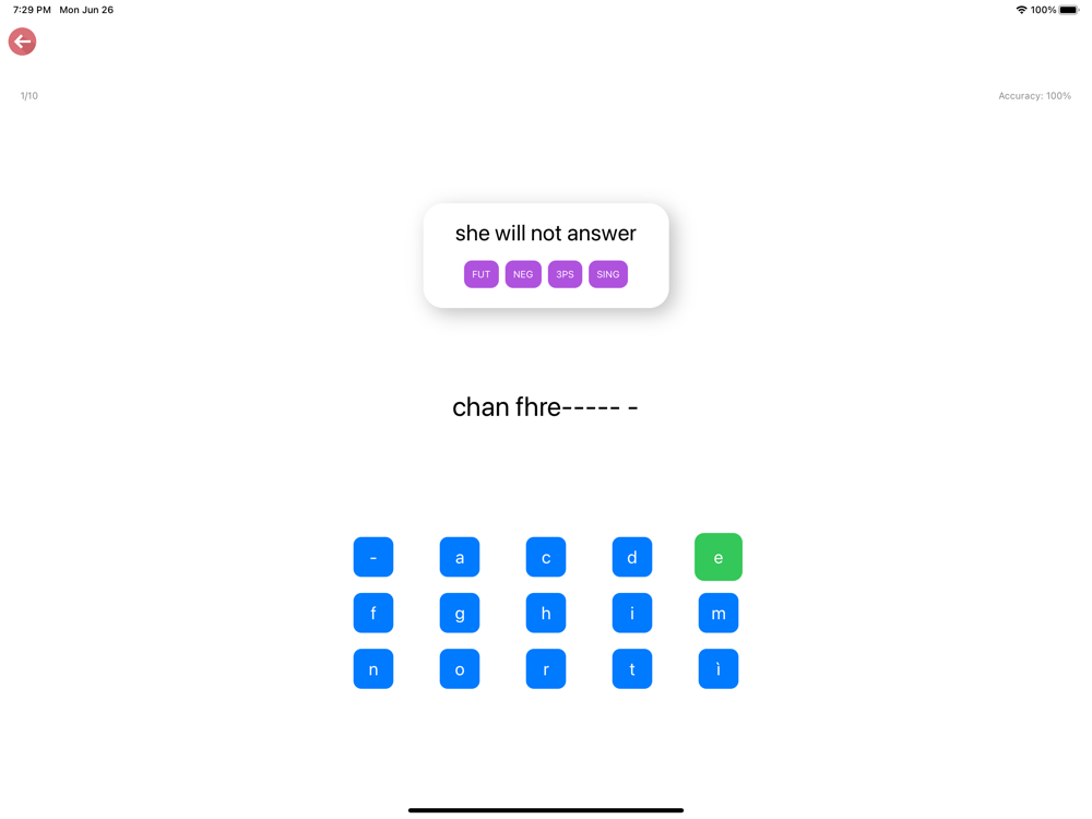 - Gapfill: can you spell out the missing word in the conjugated sentence?