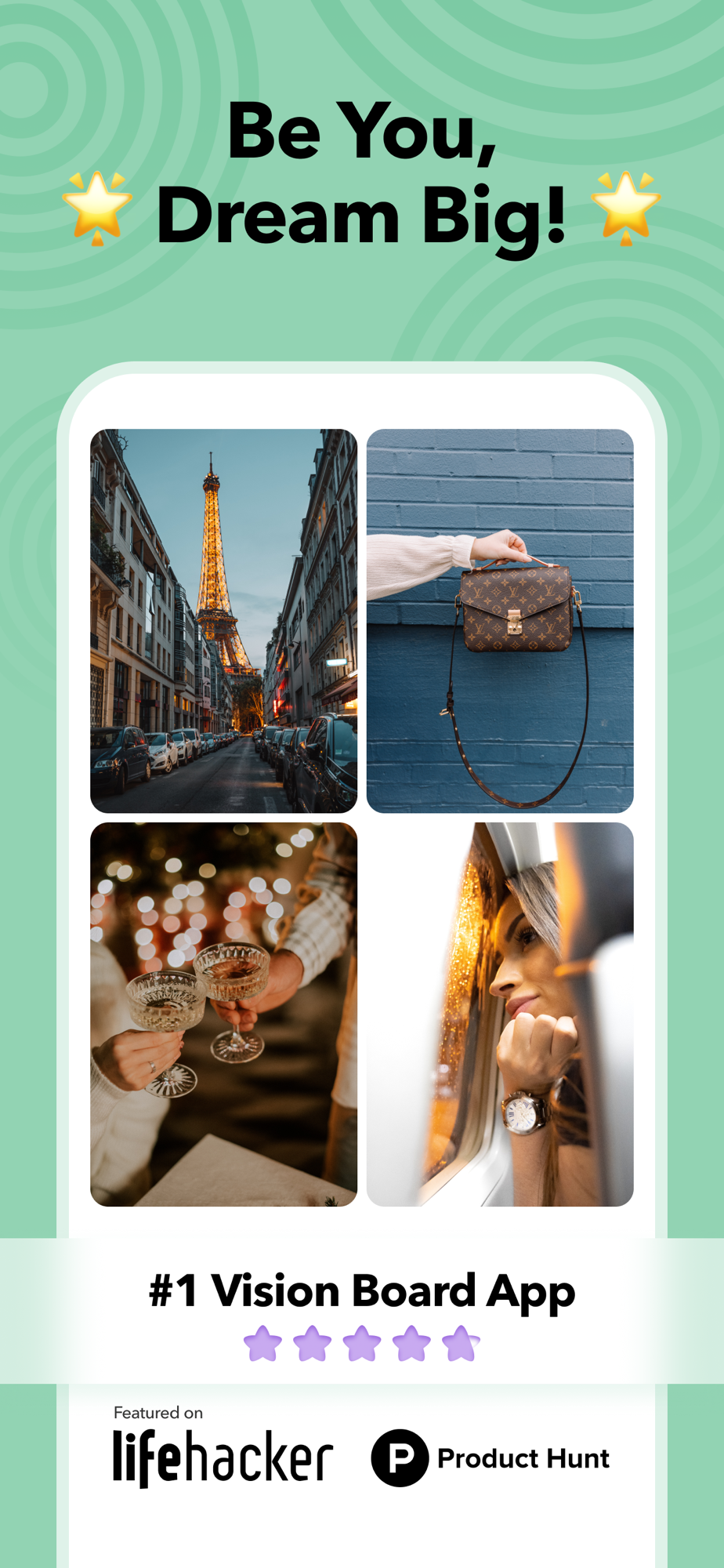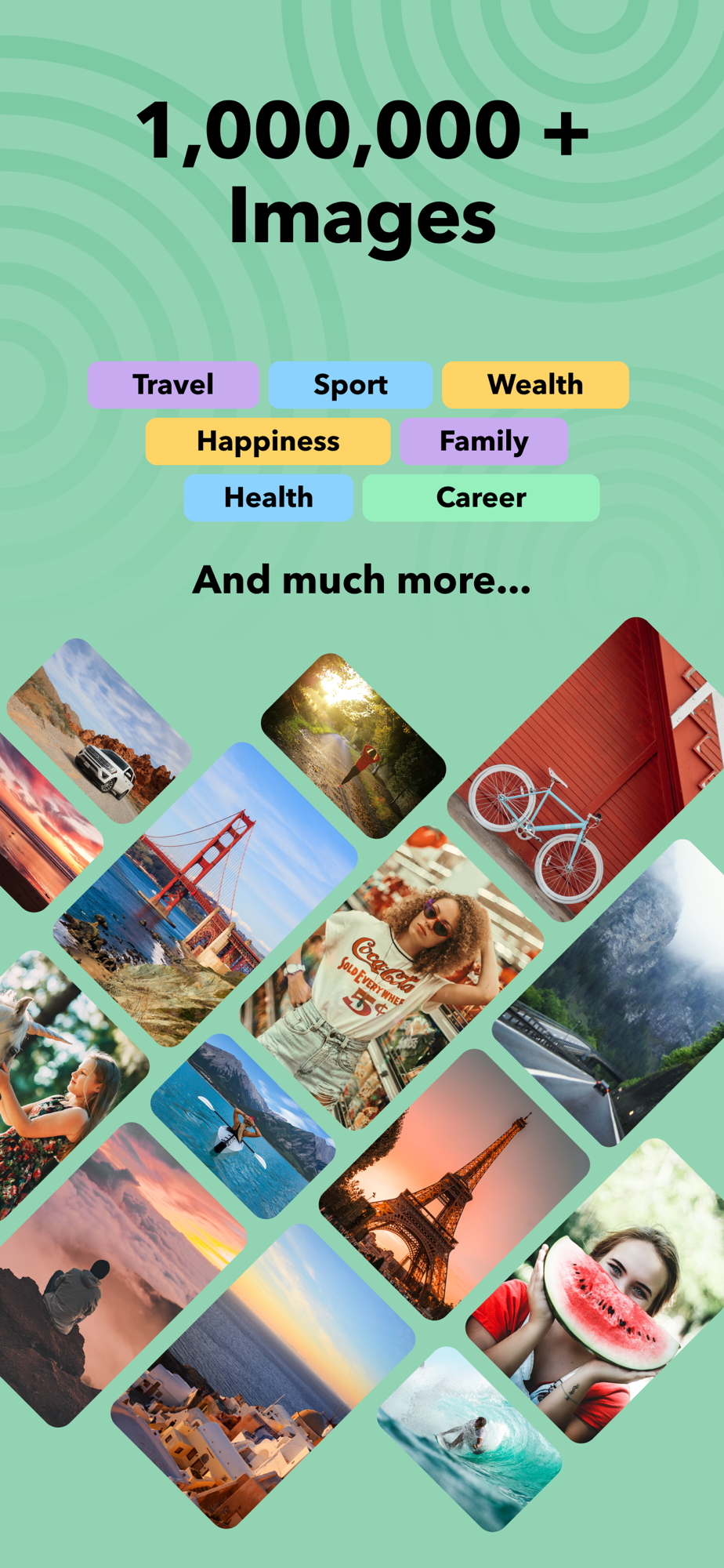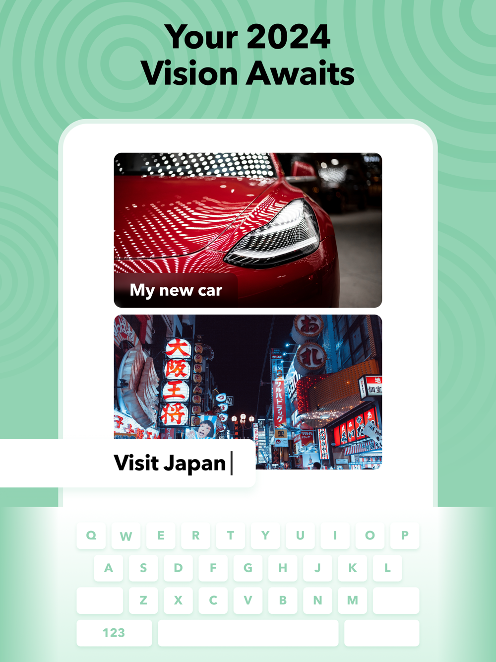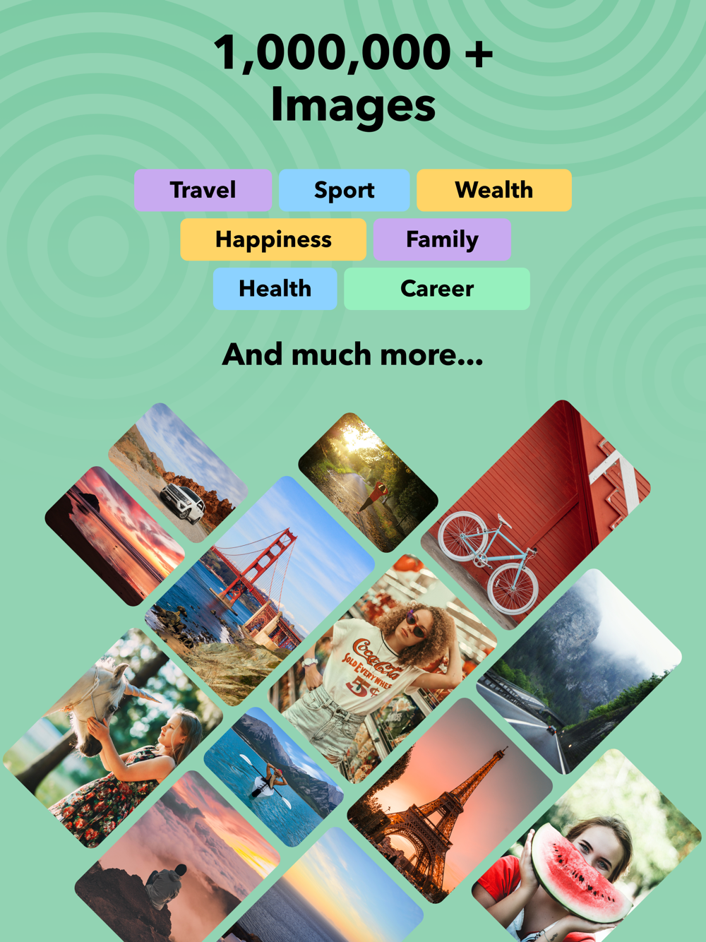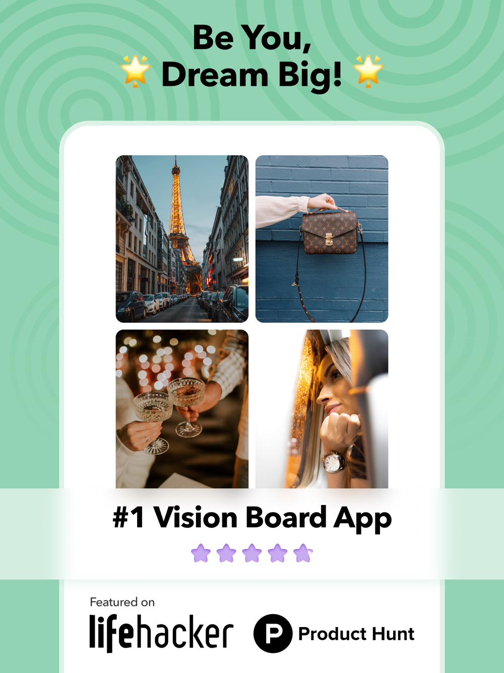 - Find joy, happiness, and inspiration as you work towards your goals with the vision board.