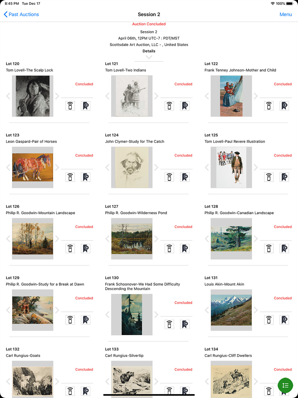 • Browsing of auction catalogs with photos, descriptions and easy use absentee bidding
