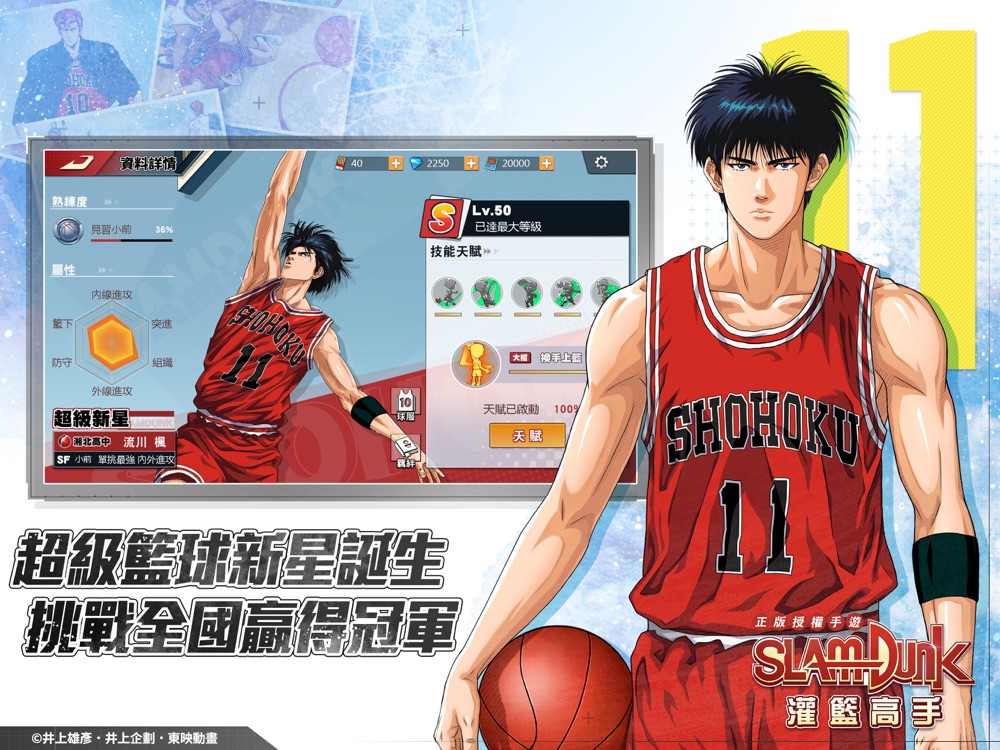 遊戲中還原櫻木花道、流川楓、仙道彰、牧紳一等經典角色的經典技能,運用你的籃球智慧,擊敗來自全國的挑戰者,贏得勝利,稱霸全國。
