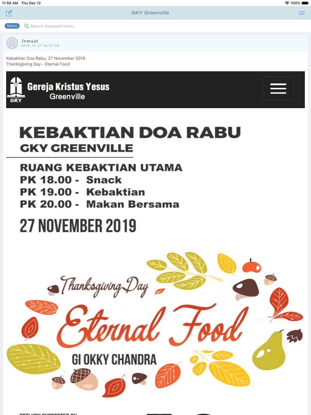 Aplikasi ini dibuat untuk melengkapi data jemaat GKY Greenville. Aplikasi ini juga digunakan untuk berbagi informasi, renungan dan warta kepada setiap jemaat GKY Greenville.