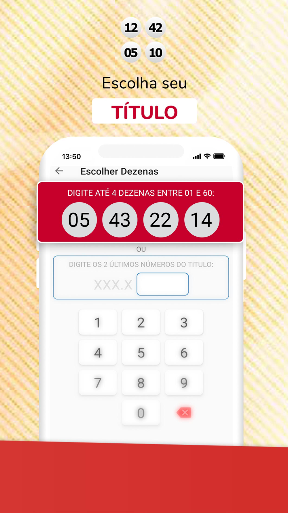 Dezenas no App: Sabe aquele número da sorte? Use ele aqui no app pra escolher as dezenas (nas compras com cartão de crédito);