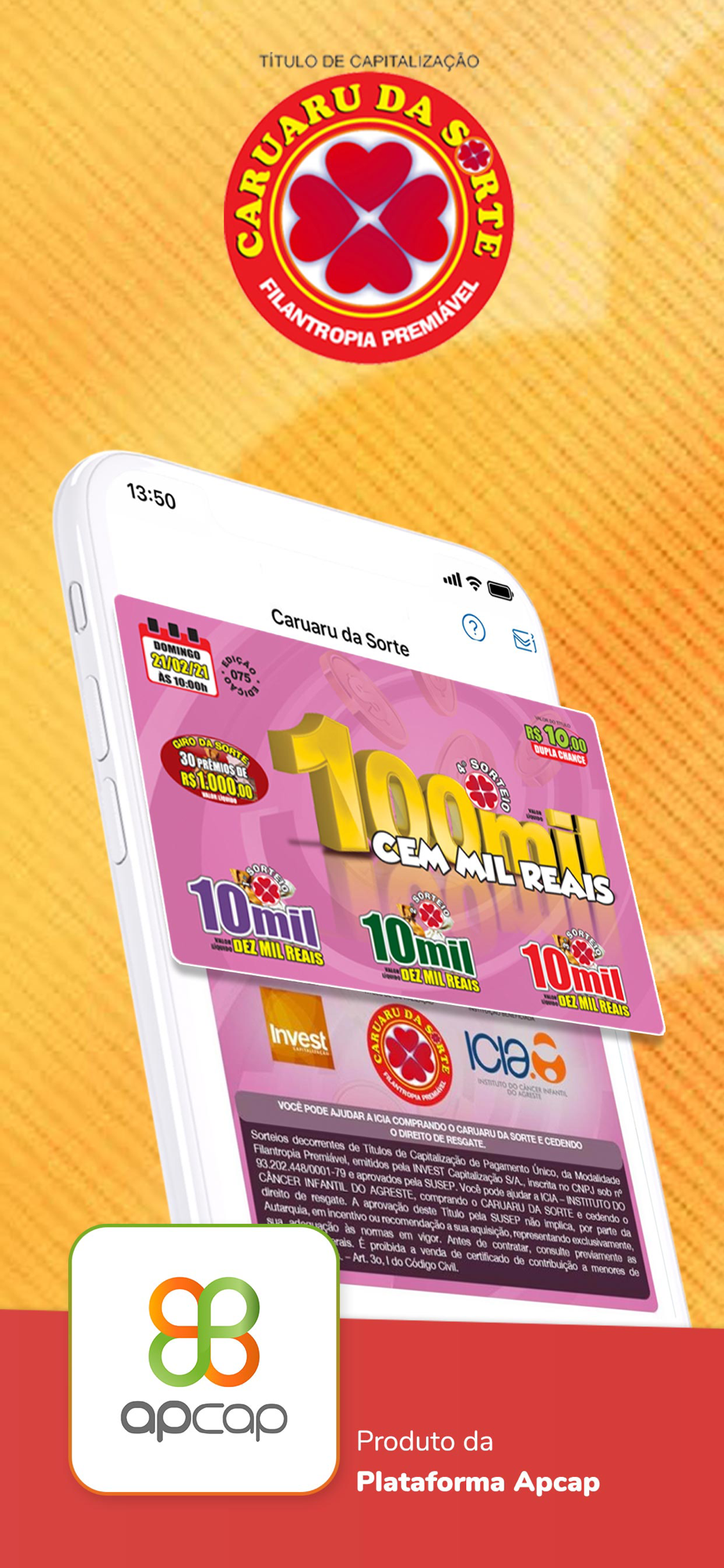O CARUARU DA SORTE é um Título de Capitalização de Pagamento Único, da Modalidade Filantropia Premiável, com atuação no Agreste de Pernambuco, aprovados pela SUSEP e emitidos pela Kovr Capitalização (CNPJ nº 93.202.448/0001-79). Além de proporcionar o direito de participação em sorteios ao subscritor, com o CARUARU DA SORTE você pode contribuir para o desenvolvimento e custeio da ICIA – INSTITUTO DO CÂNCER INFANTIL DO AGRESTE, através da cessão do direito de resgate do seu Título, gerando recursos que serão investidos em tratamento e atendimento médico-social digno e humanizado às crianças e aos adolescentes carentes portadores de câncer do interior de Pernambuco. Conheça mais sobre o trabalho e os projetos da ICIA no site: www.icia.org.br. Adquira seu CARUARU DA SORTE, colabore com estes projetos, e ainda concorra a muitos prêmios.