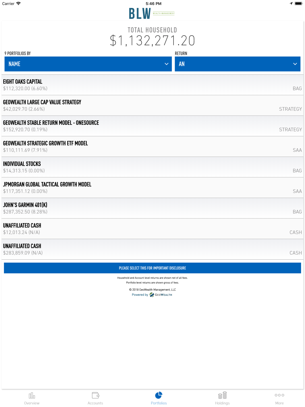 • See up-to-date performance returns and holdings on the household, account and portfolio levels
