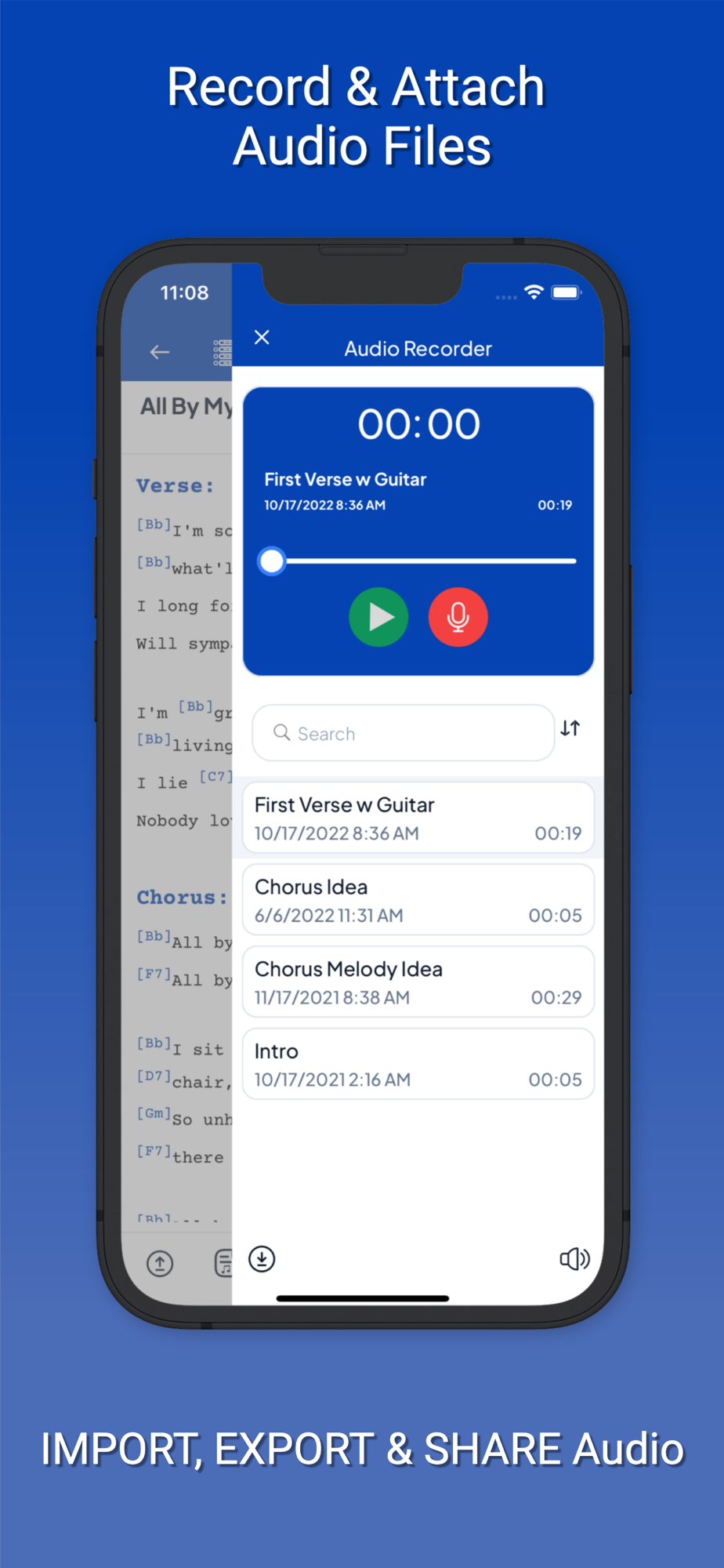 ⁃ Backup & Share songs and lyrics, including audio & voice recordings, to collaborate with others.