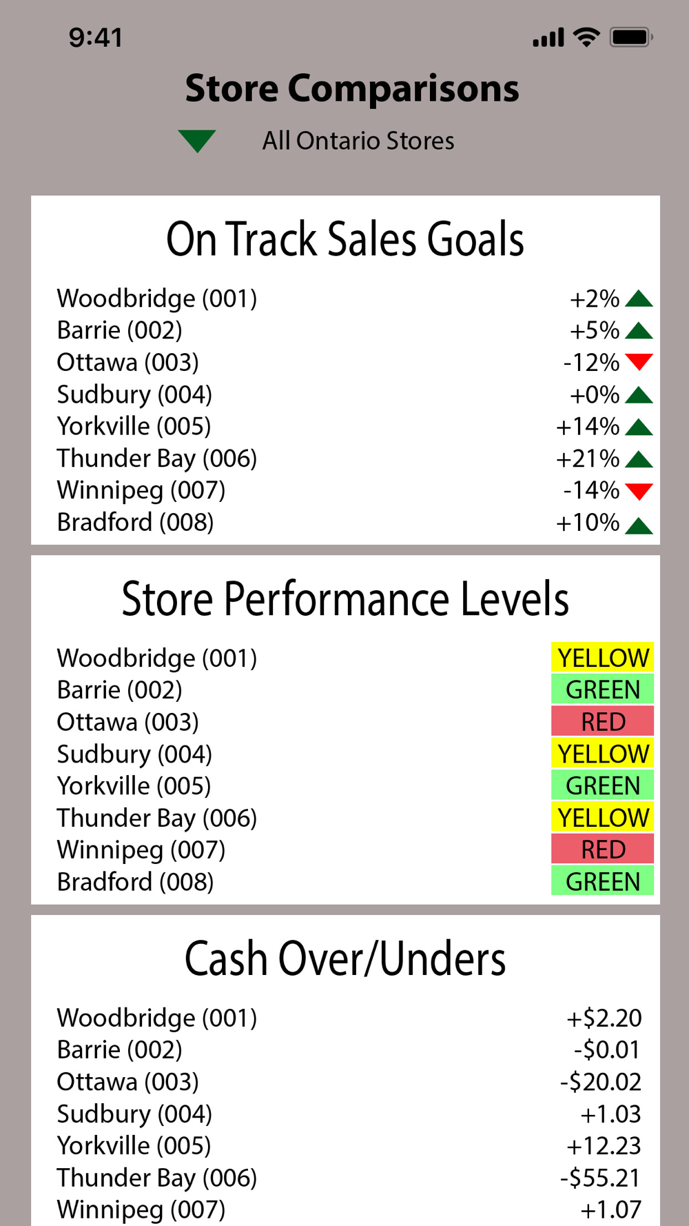 Its goal is to provide owners and operators and managers snapshot information on the status of their store(s). This includes live and historical sales, as well as important metrics like no sale counts etc.