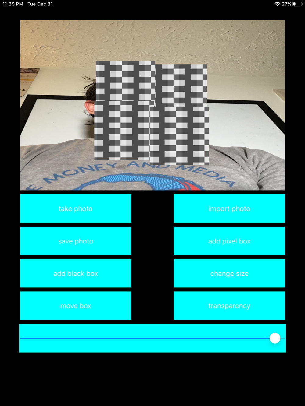 Blur Things hides information in photos. You can add a black or pixel box onto your photo to hide or conceal any information. You can adjust the size of the boxes as well as the opacity.