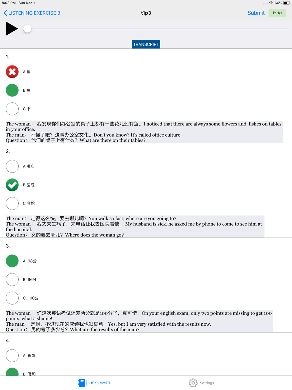 To pass the HSK 3, you need to get at least 180 points.
