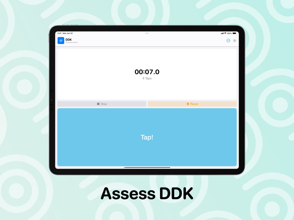 A timer utility application that assists in assessment of a patient’s diadochokinetic rate and more. Count “Puh-tuh-kuh,” swallows, and estimate heart rate. Recent assessments can be reviewed and pinned in the “History” page.