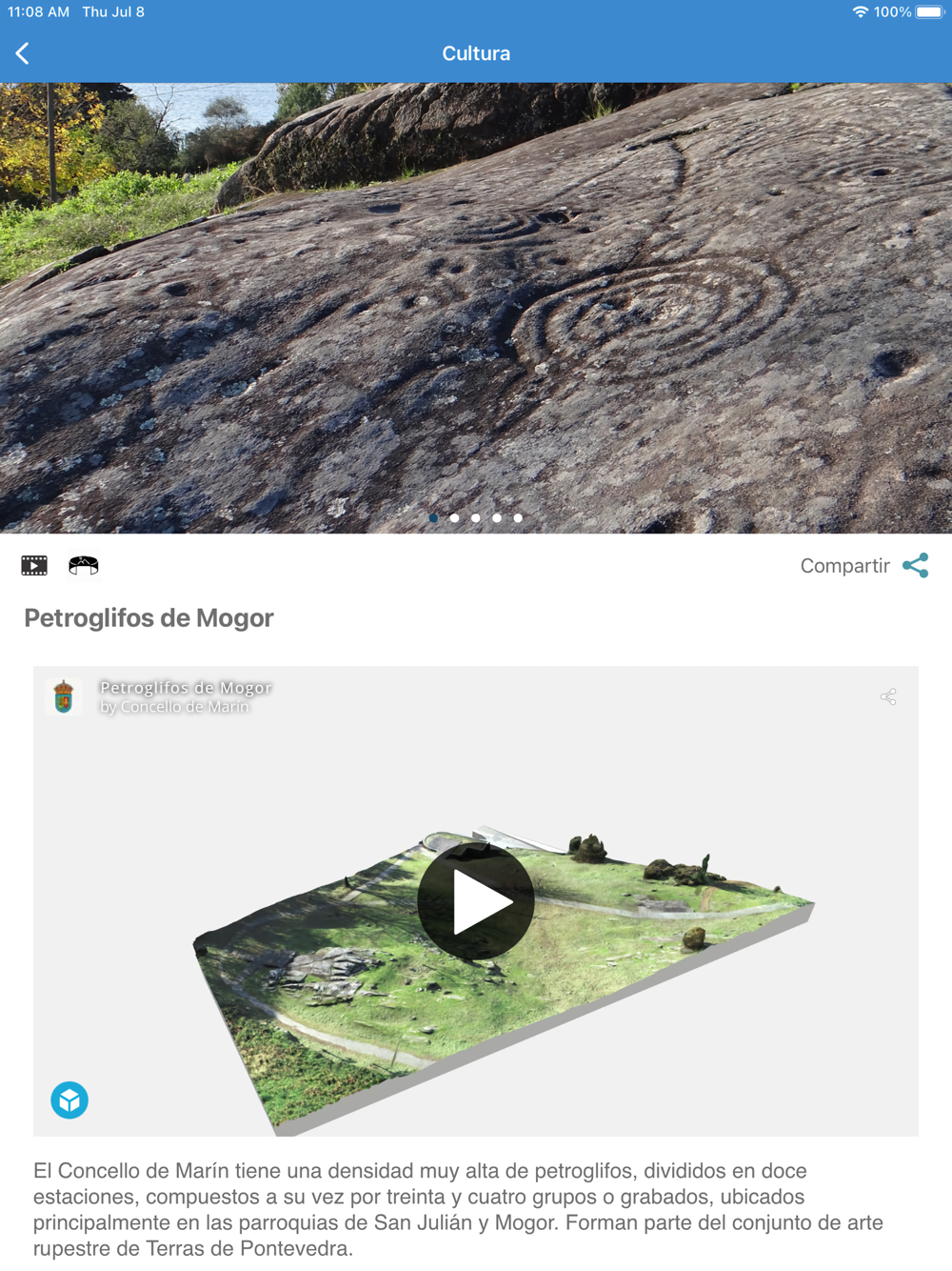Con la app de Marín podrás acceder a la actualidad y eventos de la región, acceder a la información geoposicionada de los recursos que ofrece la región y visualizar a través de "Realidad Aumentada" los modelos más representativos. *Solo dispositivos compatibles con AR*.