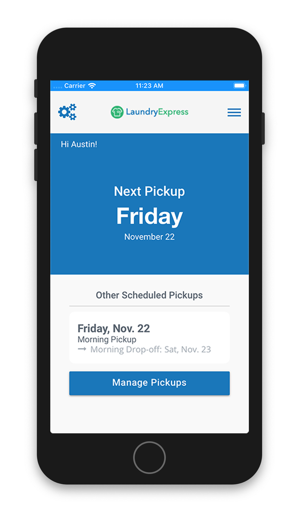 Laundry Express offers the best, personal, next-day return, laundry service. Create an account, choose your plan type weekly or by request set up your laundry preferences (everything from which detergents, fabric softeners and dryer sheets you like to how you want your clothes folded), set up your first pickup and say Goodbye! to laundry. From here on, weve got it! If you choose our by request plan, well send you a notification the day before were coming to your neighborhood to see if you want a pickup. If you do, just tap and well put you on the list. Regardless of whether youre on the weekly or by request plan, well send a reminder the night before your pickup and once again when the drivers on the way so you dont forget to leave your clothes out Choose Your plan type weekly or by request Detergents (familiar brands including eco-friendly, hypoallergenic and fragrance free) Fabric softeners Wash temps Dryer Sheets Dryer temps Folding preferences Notifications types and frequency Manage Pickups Account information Billing information Plan type Preferences Special instructions Vacation hold