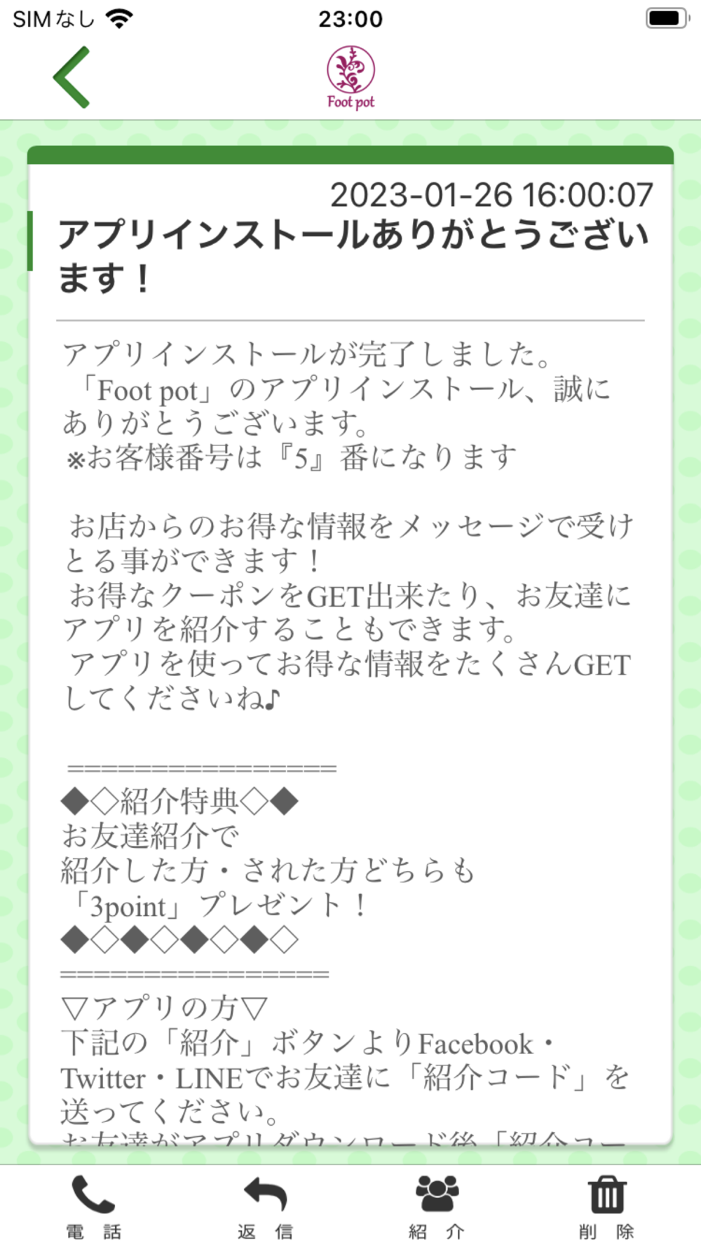 Foot potのアプリをSNSを通じてお友達に紹介する事ができます。