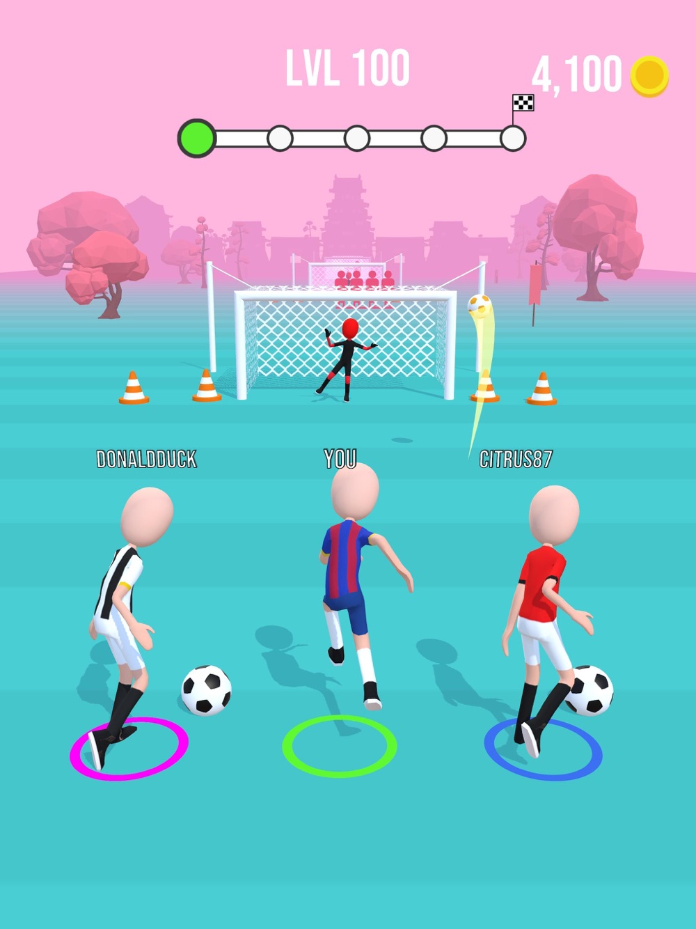 Aim by dragging your finger on screen and shoot ball into goal, be as fast as you can and be first to reach last goal.