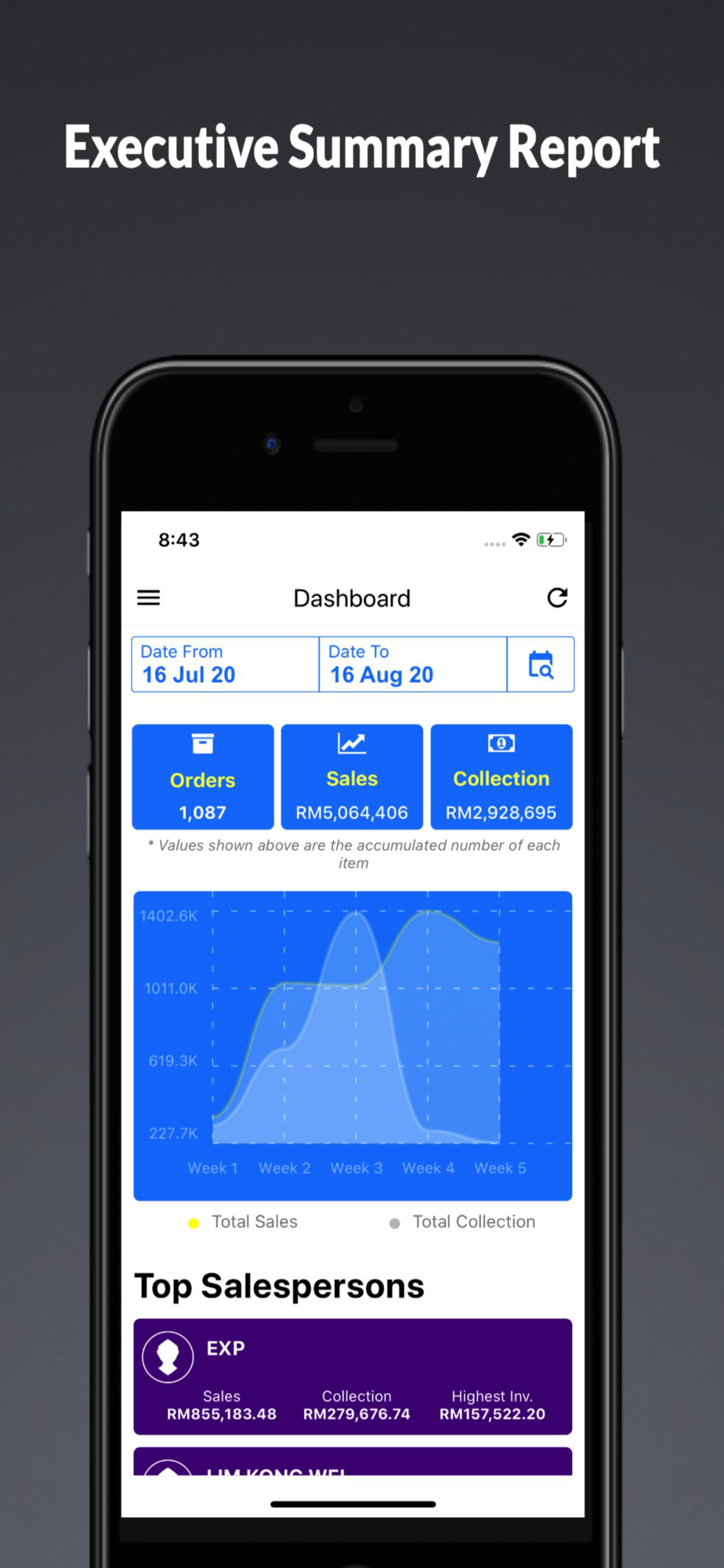 ESReport is designed to help business leaders to take effective business decisions with meaningful business insights. We provide an all in one dashboard for business executives where they can find summary reports on their sales, collections on different time range.