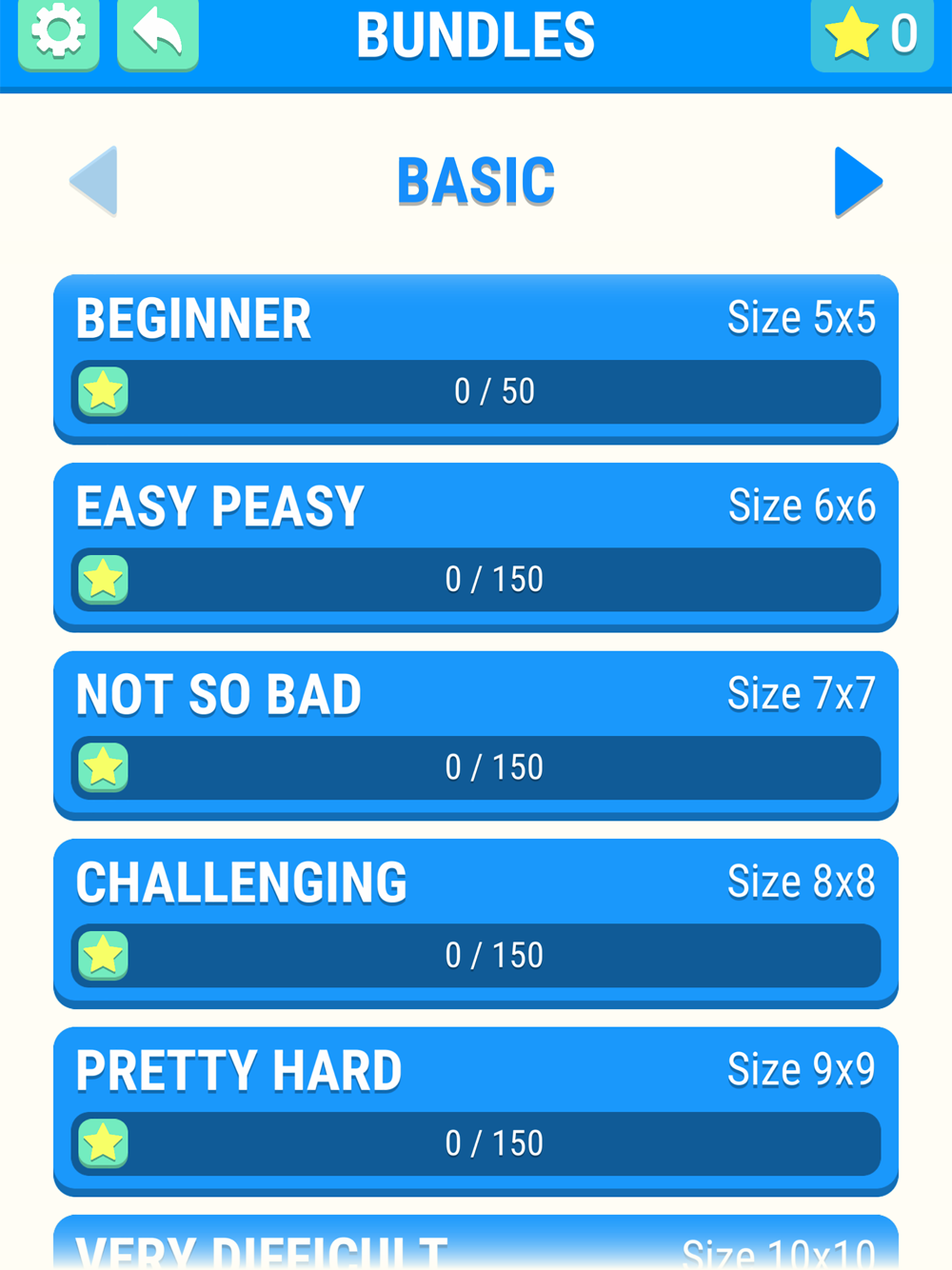 ● Stars! Complete a level with as few moves as possible to earn a gold star! Collect enough gold stars to unlock more level packs!
