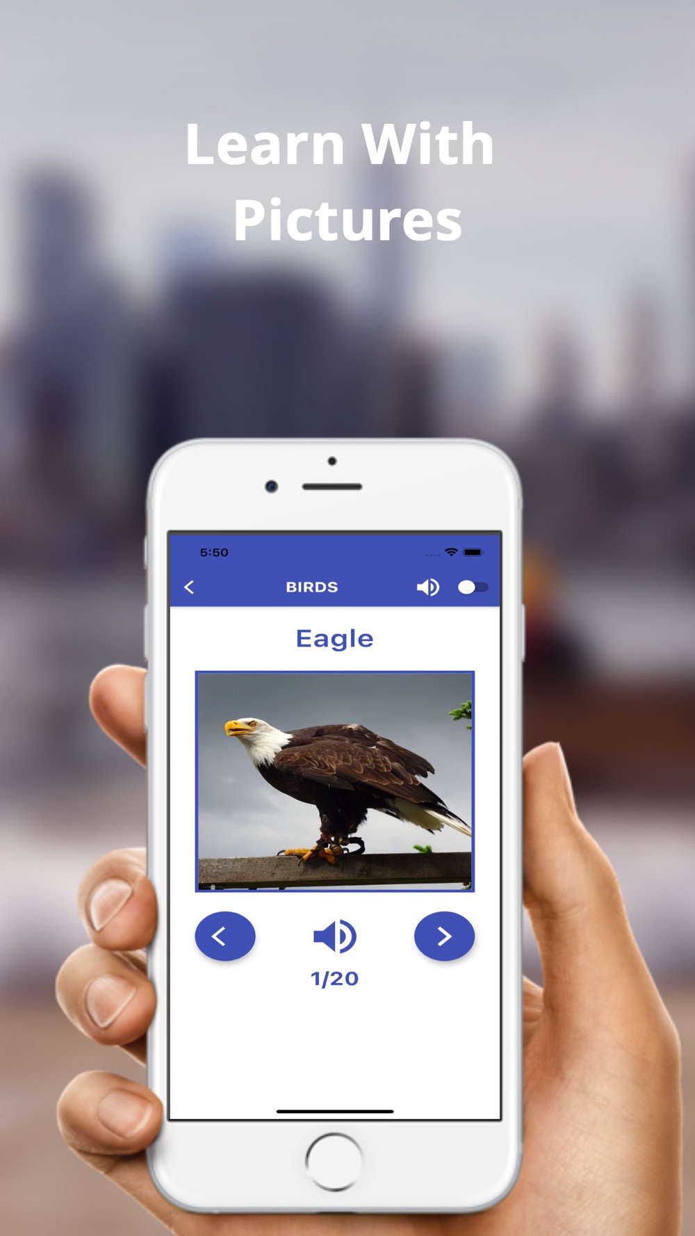 Learn Basic English Vocabulary for Kids and Beginners with Pictures and Pronunciation. English vocabulary with flashcards aims to teach English vocabularies with the help of pictures and correct pronunciations. The app is structured simple to use and user-friendly. There is no need for subscription and it is totally free. There are 50 topics in which user go through basic english words with pictures.