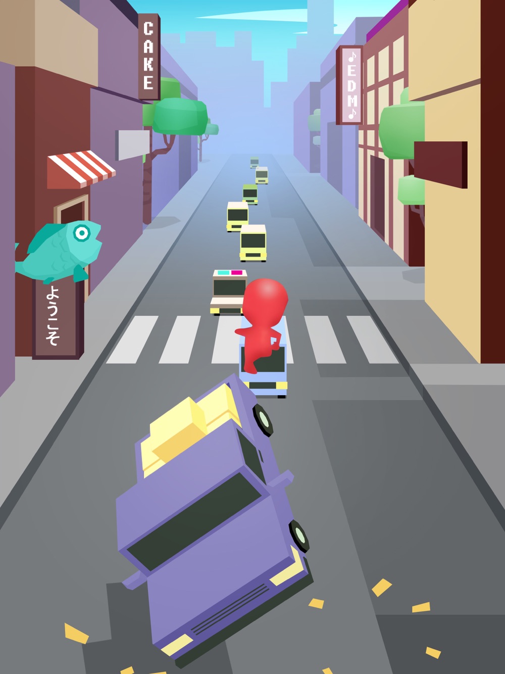 Dodge the heavy traffic by leap on the car and try not to fall.