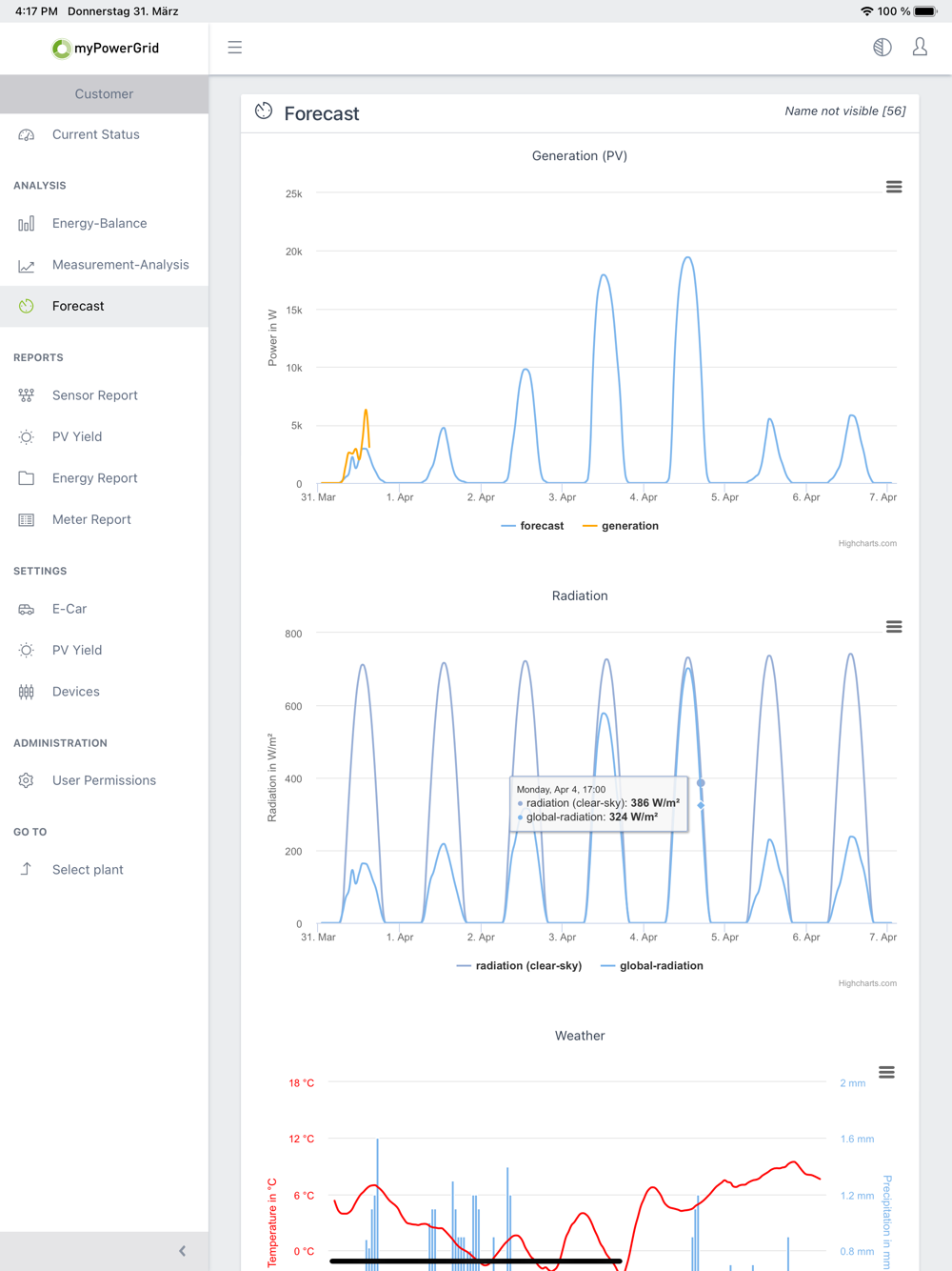 myPowerGrid is our solution for the intelligent control of energy flows in your own home or company. Our myPowerGrid app gives you the ability to monitor, control and analyze energy flows in your property to get the most out of your renewable energy. Each of your energy managers ("Amperix") is clearly displayed here in one platform, and can now be viewed on the go. Discover the possibilities of our algorithms and services and use them now even more comfortably!