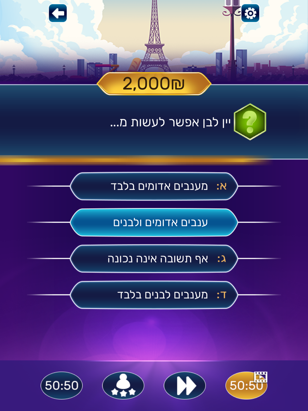 2) כל שאלה עולת דרגת הקושי ובכך גם סכום הזכייה שבו תזכו במידה ותענו נכון על השאלה.