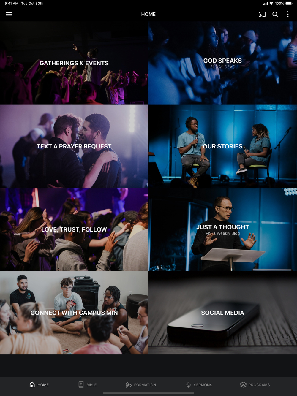 Our aim is to be a people who love, trust, and follow Jesus. This app is an easy way to do that. Use the app to text a prayer request, watch and listen to sermons, find a life group, see what's happening, join a mission trip, and more.