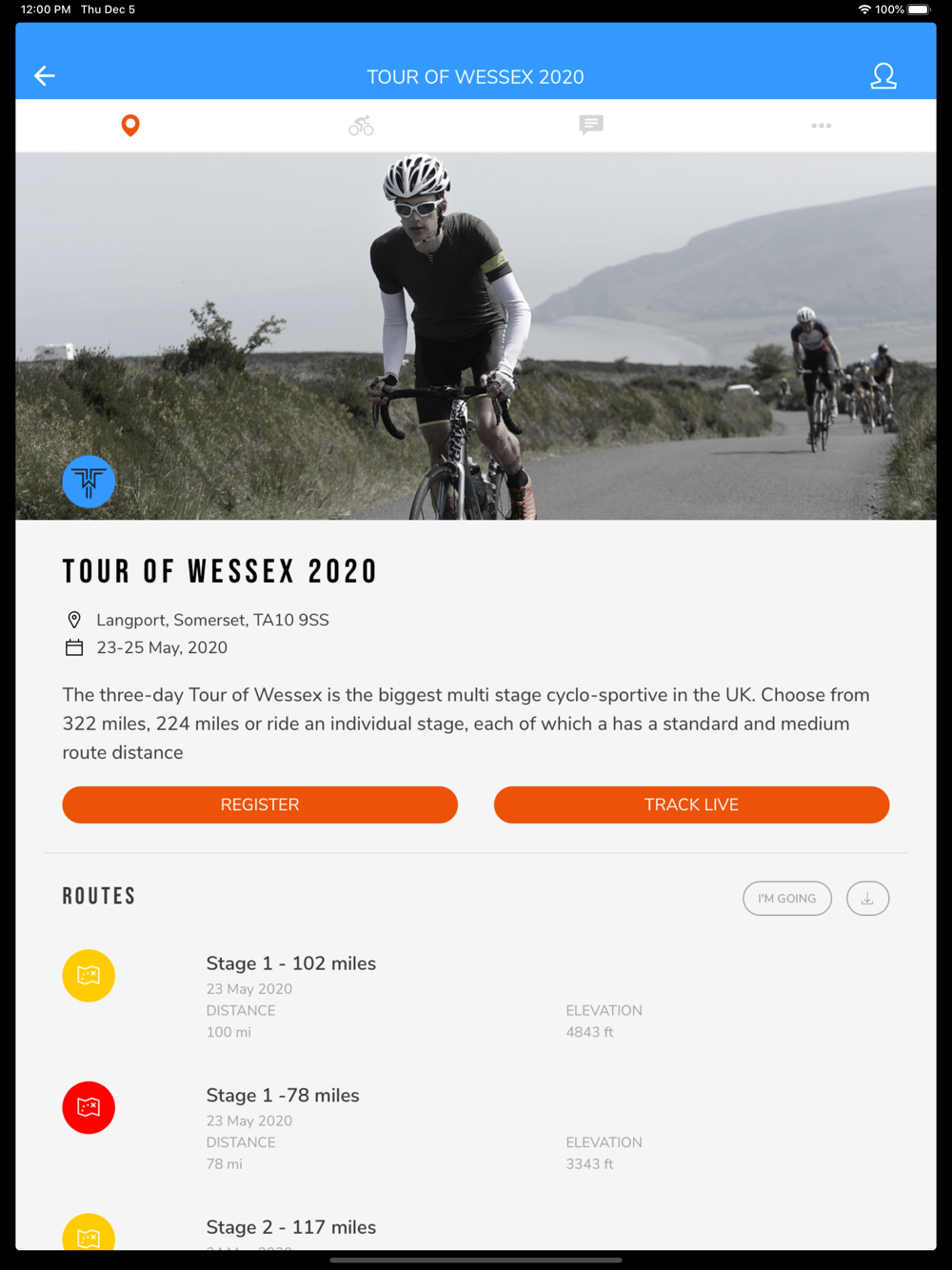 The official Earth Sports app, powered by Map My Tracks, has been developed to provide the ultimate event experience for participants attending the Tour of Wessex and other Earth Sports events.