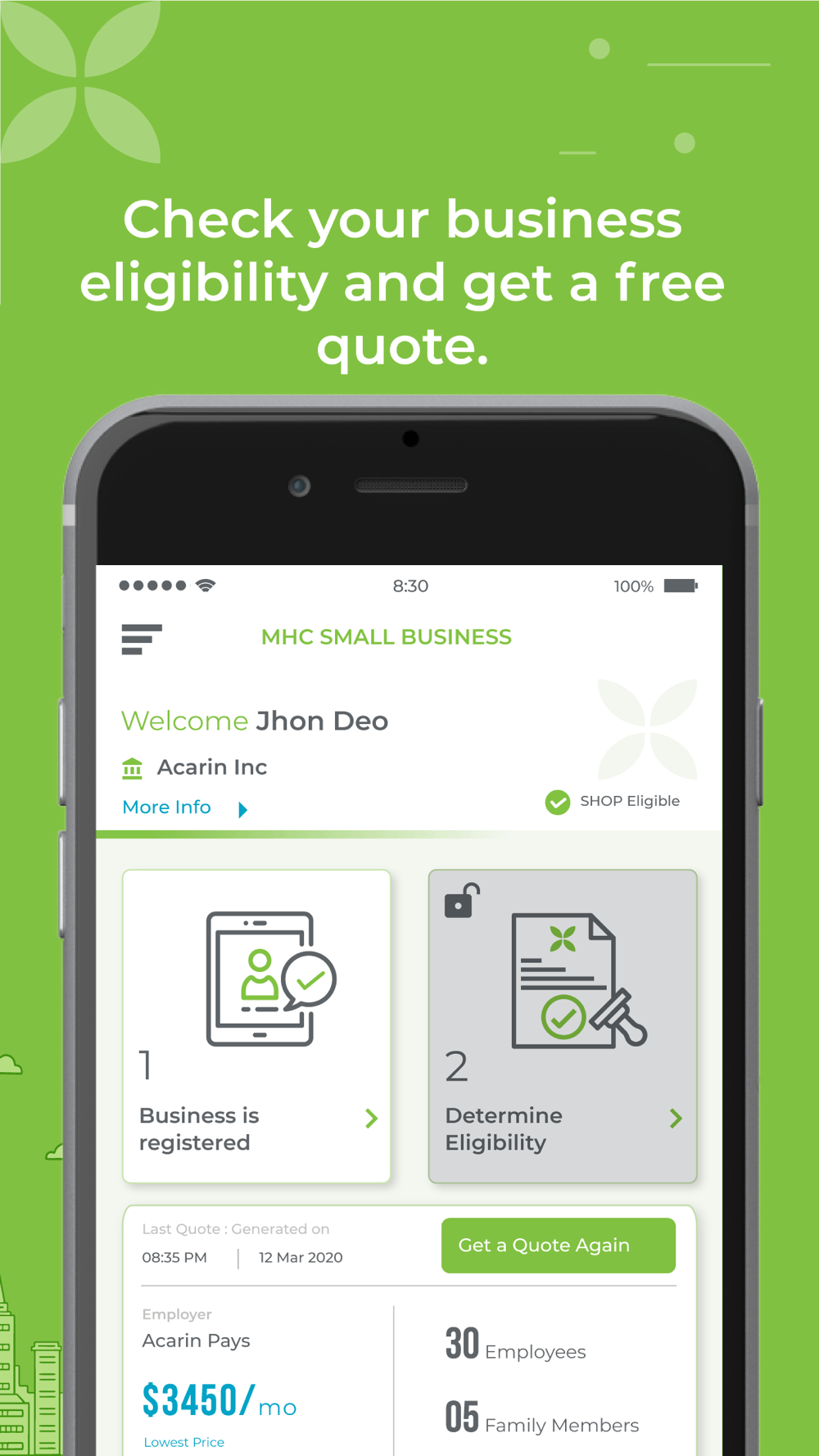 MHC for Small Business ("Small Biz") is the official mobile app for Maryland Health Connection Small Business health insurance marketplace. Employers and brokers can quickly check if a business is eligible to enroll in small group coverage. On MHC Small Biz, view available health plans and options, and get a customized quote.