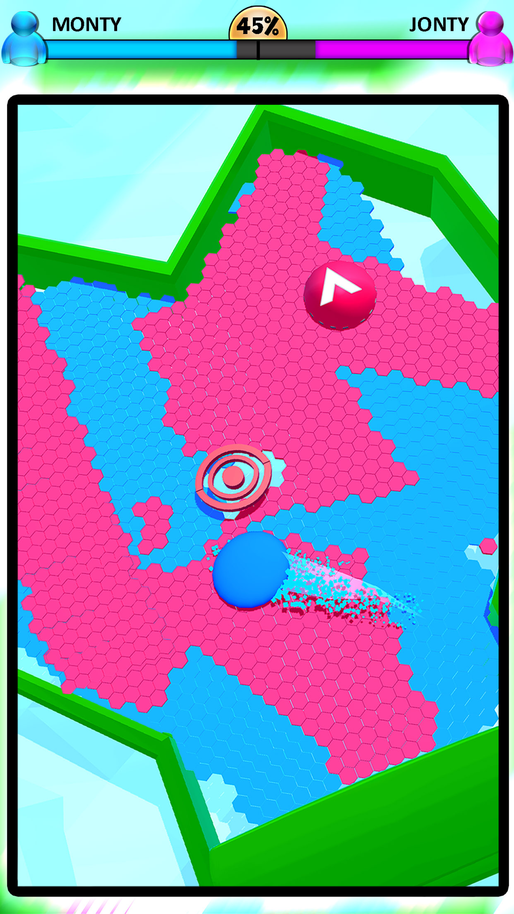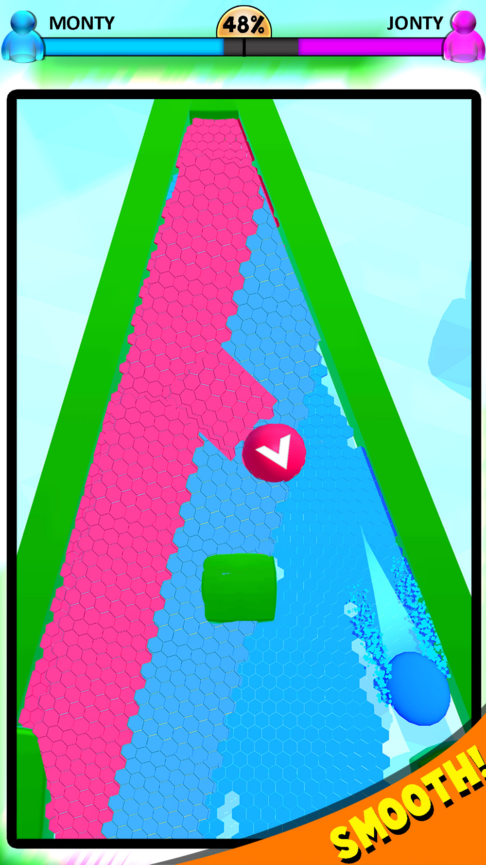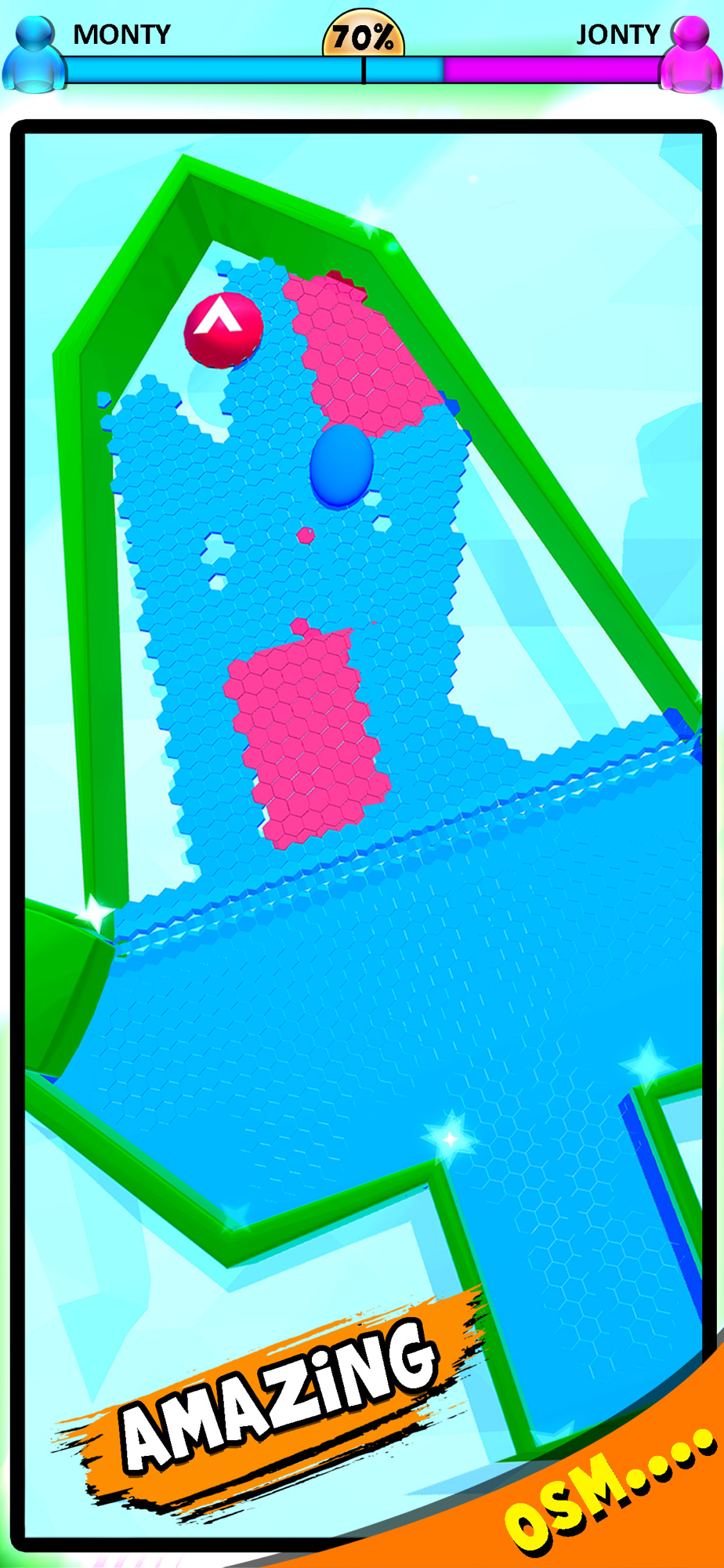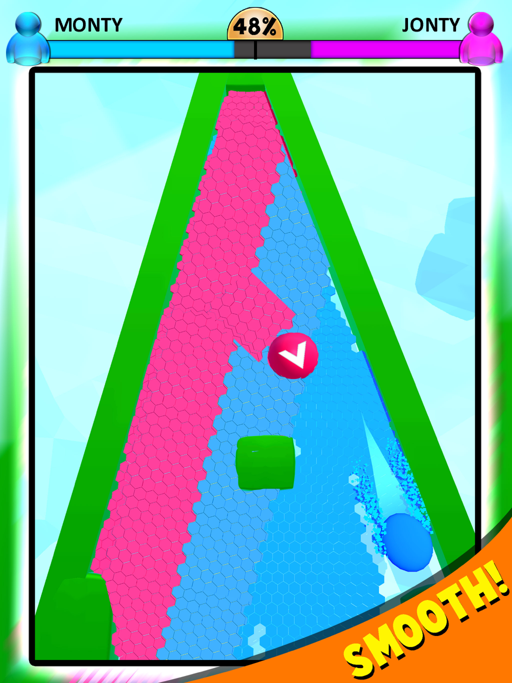 Stretch the Jelly and Release it to Fill the Color in Straight Path ahead on slippery Surface where your Opponent is also with you in the race.Your Goal is to cover maximum area with your color before your opponets do.Game Contians 100 Levels which have 15+ Diffrent type of Shapes.