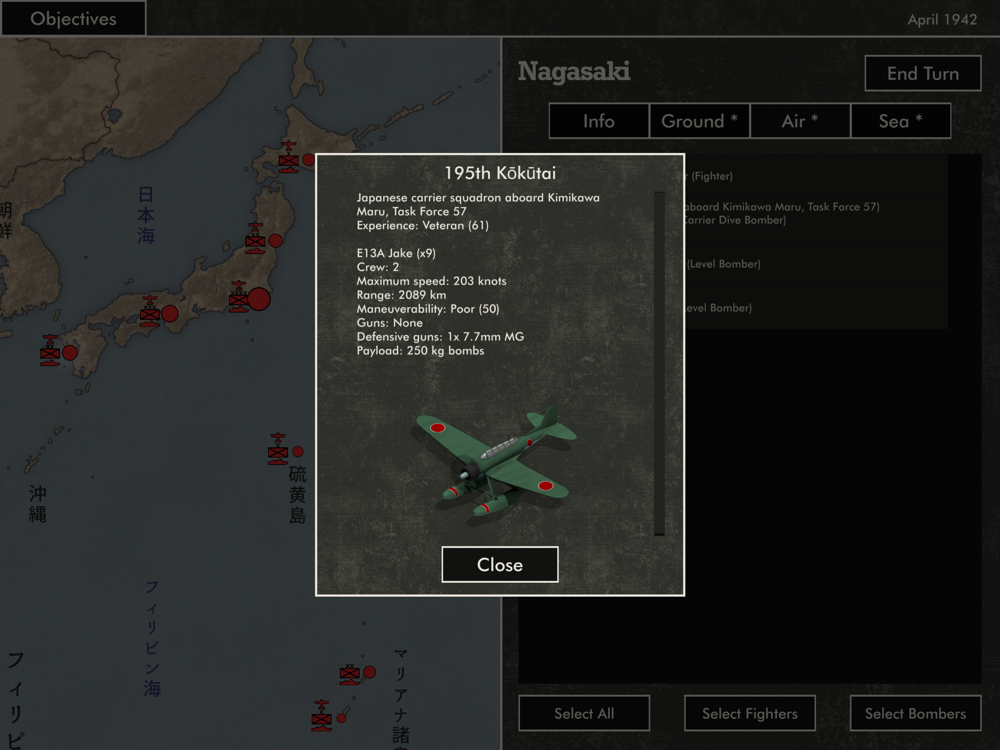 Pacific Fire is powered by a detailed and realistic simulation of WW2 air, naval, and ground combat. Fight against an intelligent AI which constantly adapts its strategy to ensure every game is challenging and unique. Challenge a friend in hotseat multiplayer (pass-and-play).