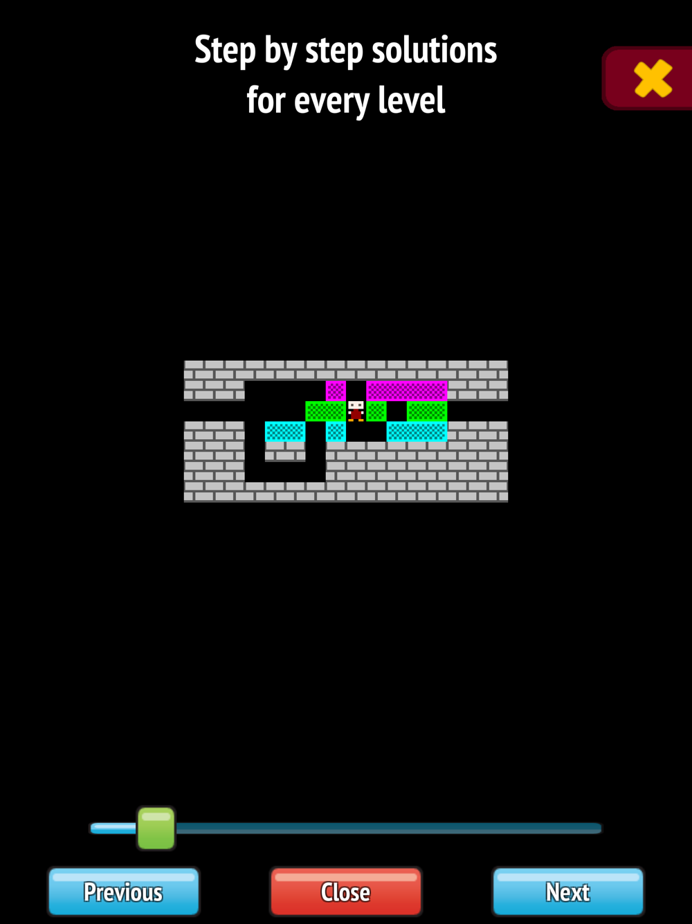 The rules are very simple: The goal is to get the character from the left of the room to right by pushing rows of blocks. Row of blocks can only be pushed left or right.