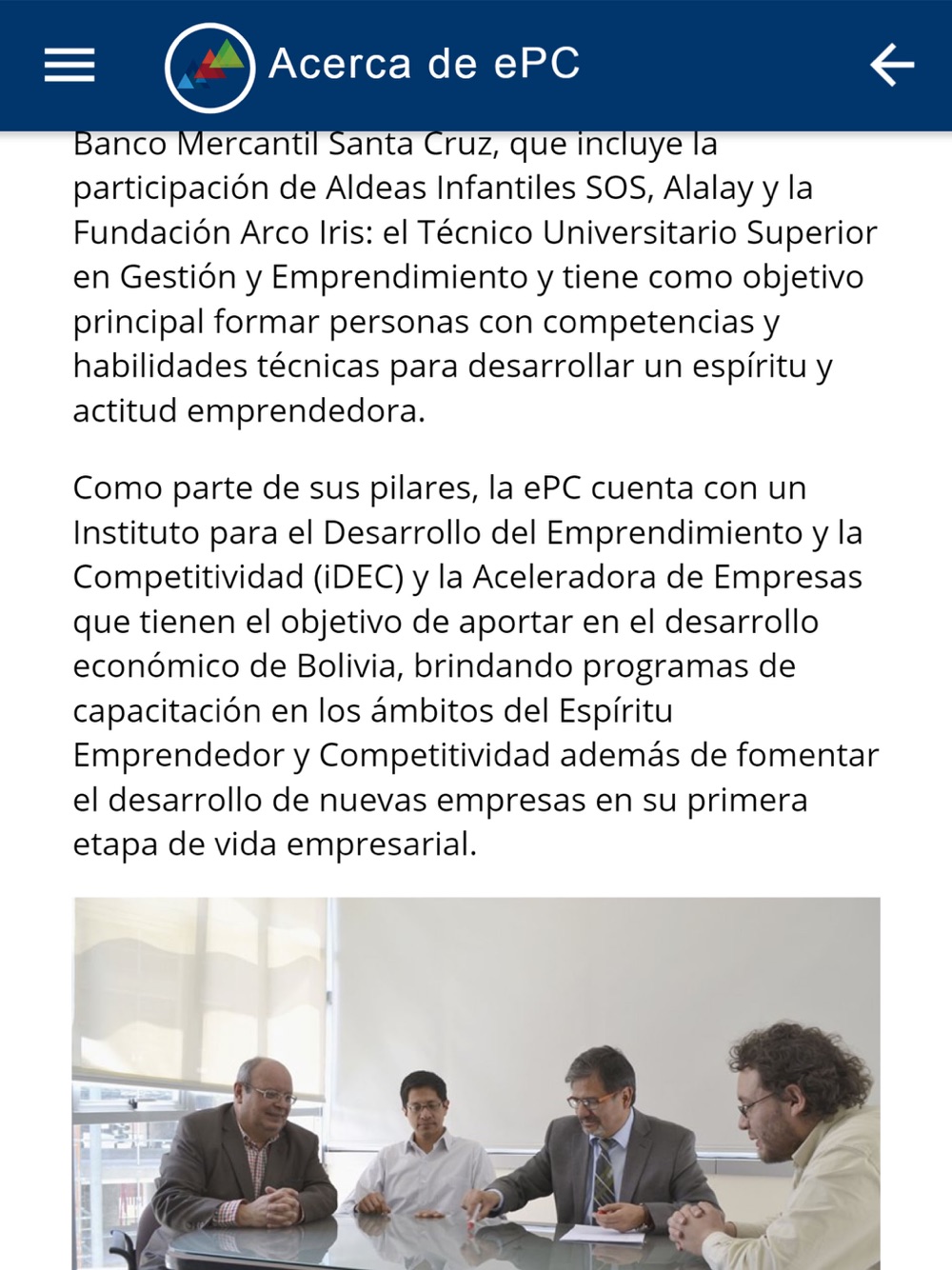 La Escuela de la Producción y la Competitividad (ePC) de la Universidad Católica Boliviana “San Pablo” es el programa de más alto nivel académico en Bolivia, que con sus programas de Maestrías para el Desarrollo ha formado a más de 1.342 líderes que aportan sus conocimientos para el desarrollo del país. A partir de 2008 da un paso significativo e innovador creando las Licenciaturas para el Desarrollo que responde a la necesidad de una nueva generación de profesionales que representen la Revolución Productiva de Bolivia.