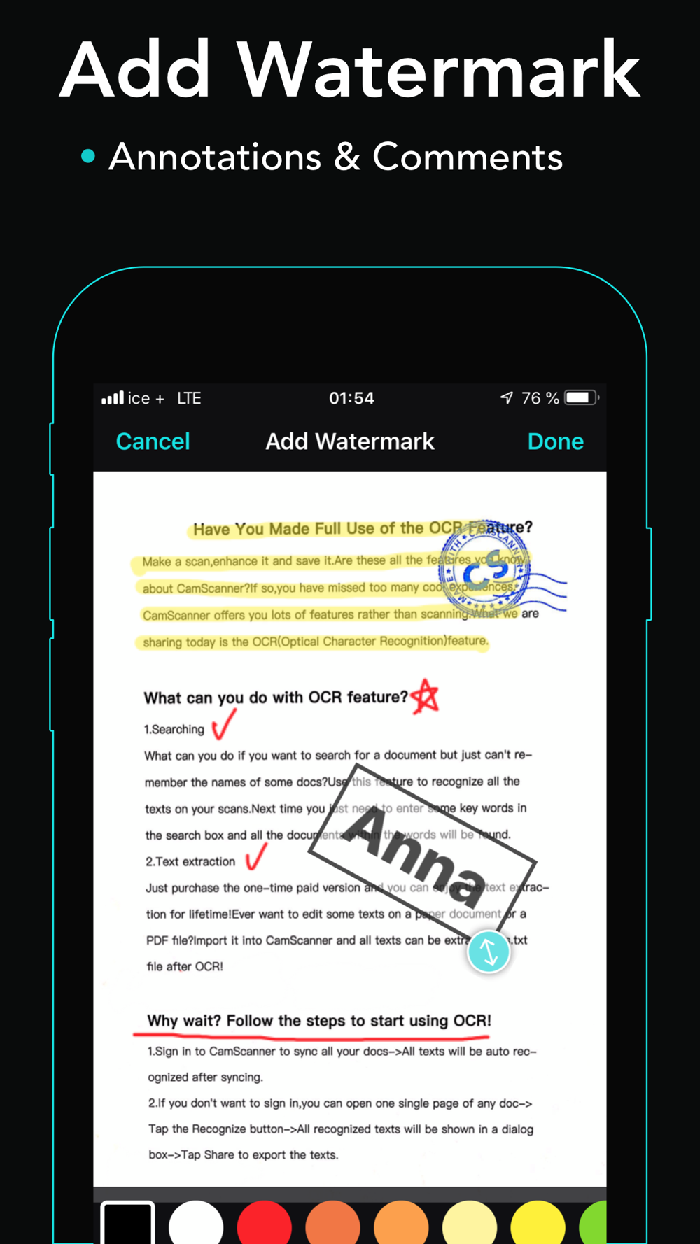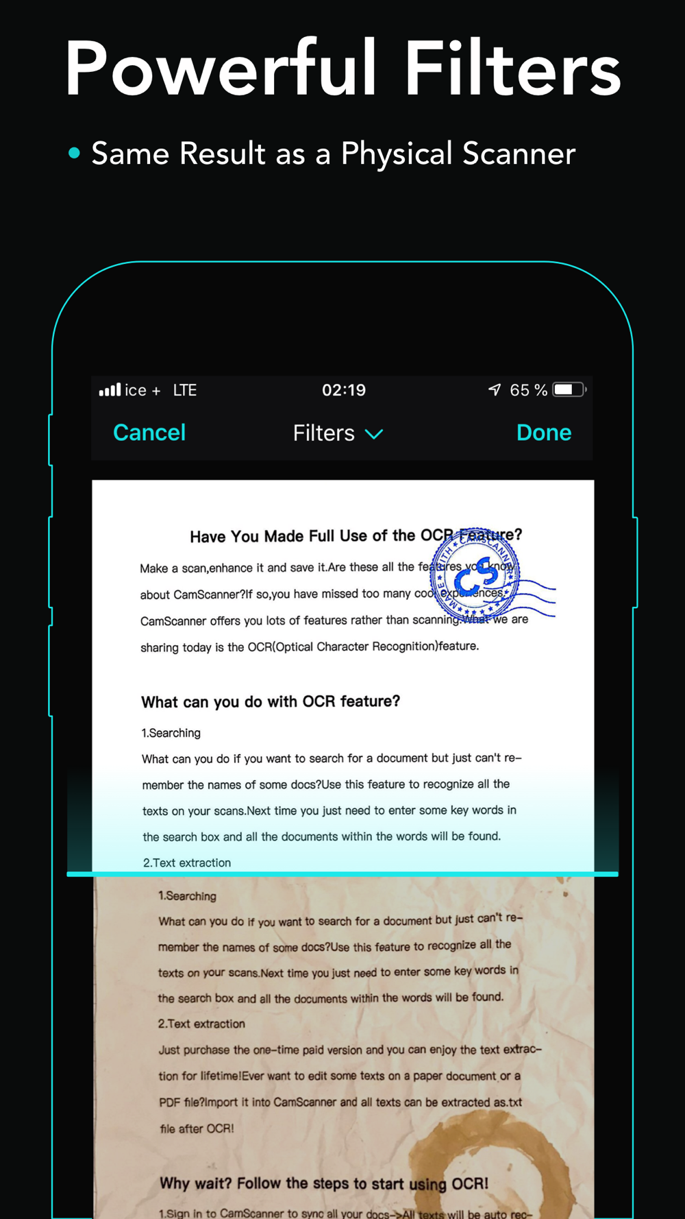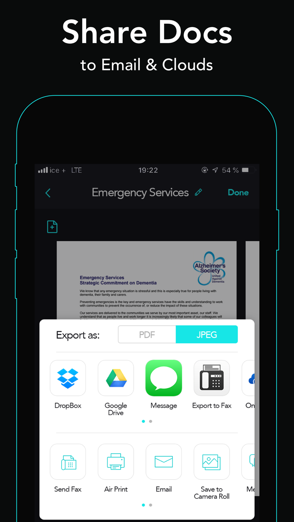Instantly print out docs in CamScanner with nearby printer via AirPrint; directly fax docs to over 30 countries from the app.