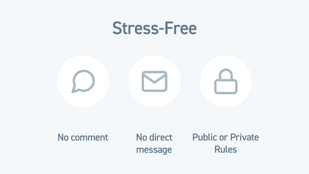 There is no comment or direct message function. If you don't want to share a rule, you can make it private.