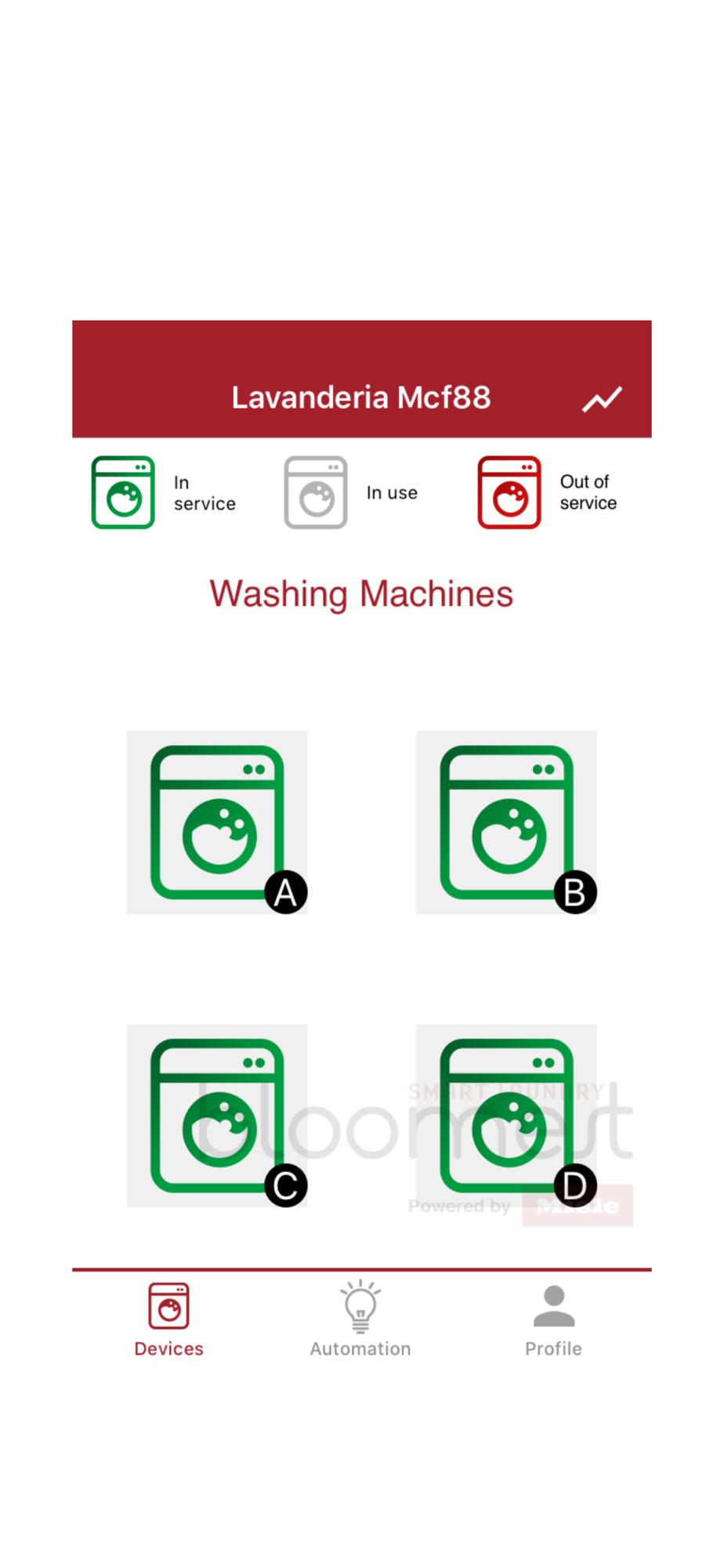 The app has been designed to make managing your laundry easier. You can carry out operations remotely, no matter what part of the world you are in. Activate or remove a washer/dryer from use, view their status, check the statistical data for the laundry, etc. You can also remotely manage the lights, doors, temperature, booster set and alarms. This means that both automation and the management of washers and dryers are covered. With the help of this app, the experience that your clients have in your laundry will be much simpler, quicker and SMARTER.