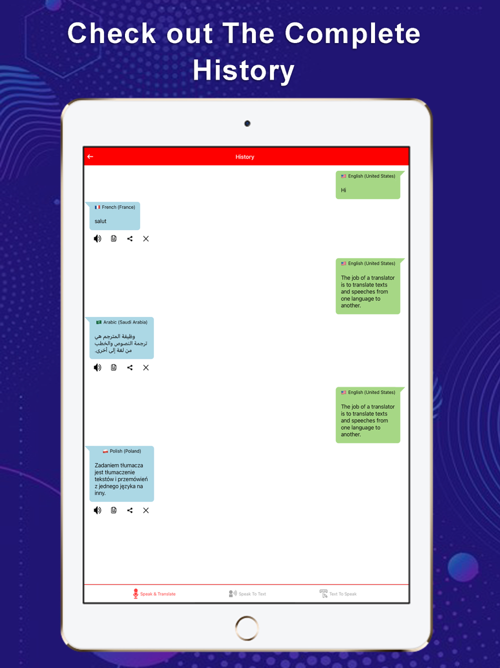 Speak and translate with our app and enjoy ultimate experience of translation on the go.