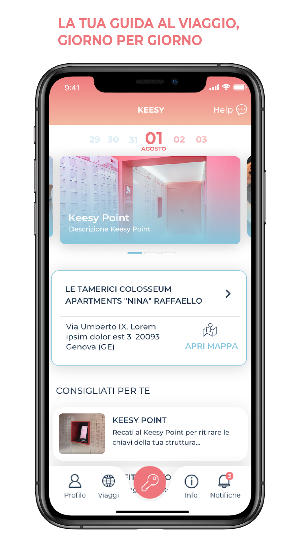 Con la Keesy App puoi completare il check-in comodamente da casa prima di partire e scoprire tutte le funzionalità della struttura che hai scelto e consigli utili sulla città da visitare.