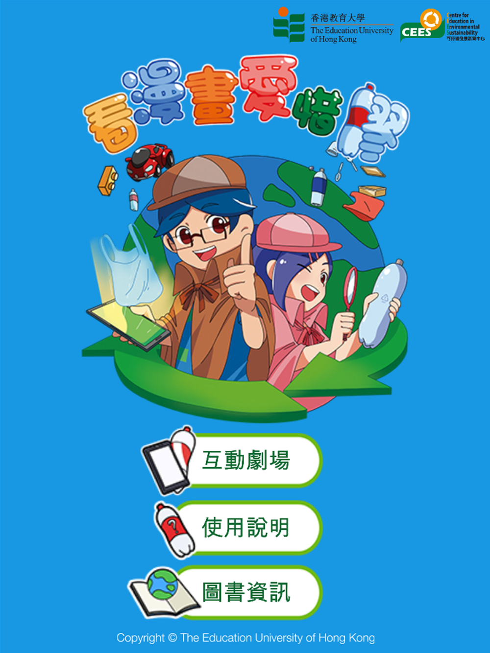 研究指出,重複的行動實踐有助建立行為習慣。大學團隊本著讓學生可隨時隨地實踐塑膠資源學習為目的,製作出《看漫畫.愛惜膠》— 香港第一本以塑膠資源教育結合AR技術的教育圖書。全書以推廣愛惜塑膠資源 — 3R (Reduce 減少使用、Reuse 重用及Recycle 回收) 和3C (Cleaning 清潔、Classification 分類及Compression 壓縮) 為核心,共分為9個單元,包含9個AR效果和3個AR互動遊戲。讀者可通過應用程式,仿如親歷其境去觀察鯨魚的肚內如何被塑膠擠滿,或嘗試透過減少使用塑膠去拯救不同的海洋生物。