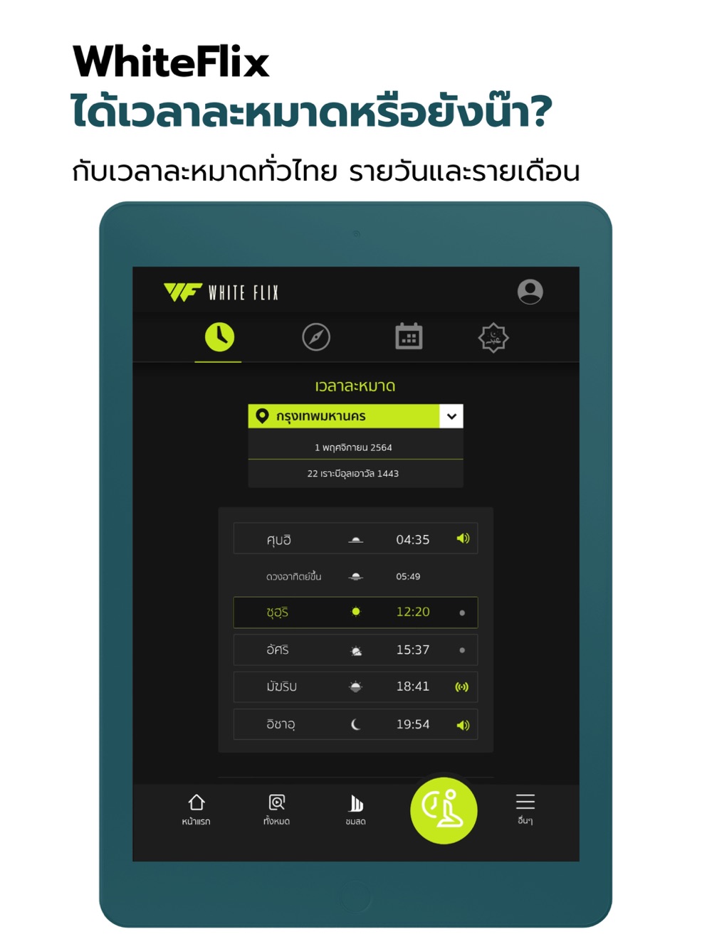 Whiteflix - Halal entertainment, news and knowledge. Prayer times for every provinces in Thailand. Daily and monthly prayer times. Live TV programs.