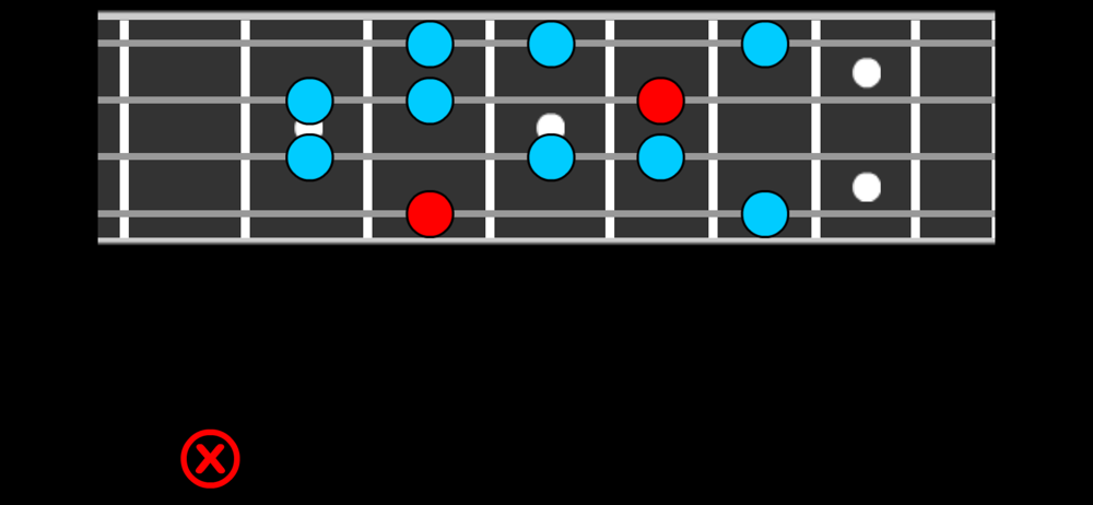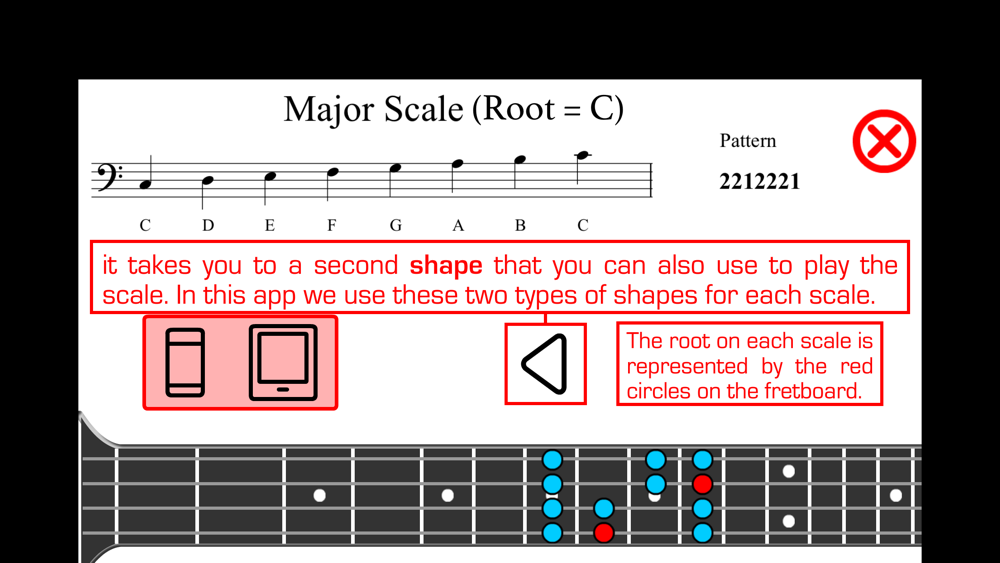 - It shows the notes of each scale on a virtual Bass Guitar so you can play it.