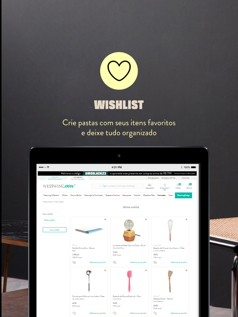 Mais que um app de loja de móveis online, a WESTWINGNOW tem como missão inspirar cada pessoa a descobrir beleza no seu viver com belas fotos de decoração. E tudo com uma exclusiva promoção Black Friday.