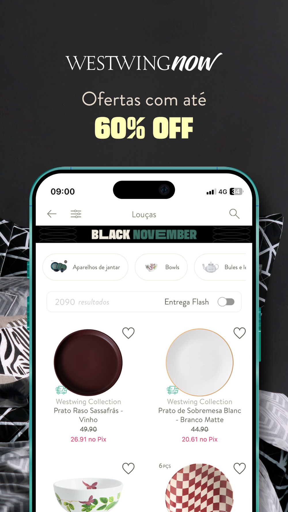 Buscando uma loja de decoração online com as melhores ofertas Black Friday para renovar o visual da casa? Baixe o app WESTWINGNOW e compre com frete grátis em pedidos acima de R$799* e ofertas de até 60% OFF.