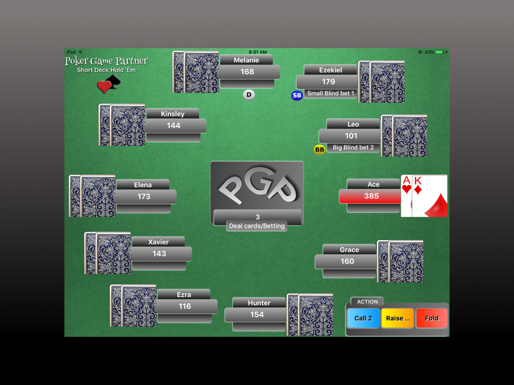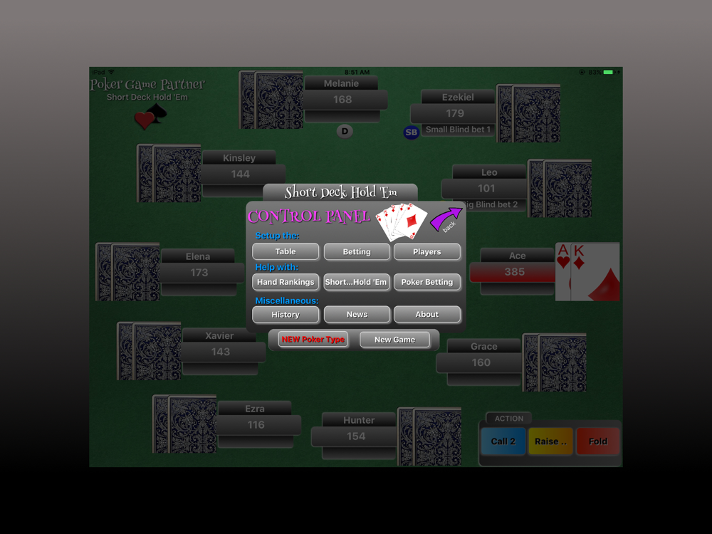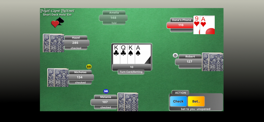 Play short deck Hold'em poker on your iPhone or iPad against challenging AI players for free!