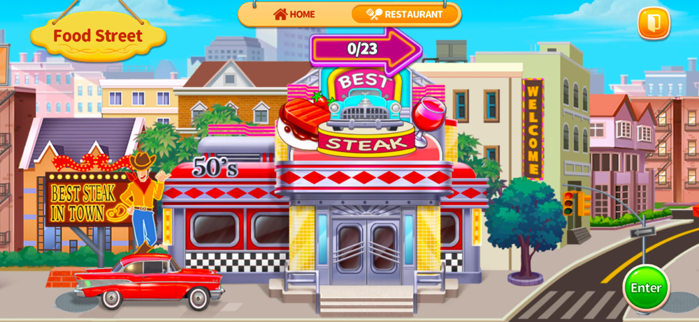 diner chef and make a sandwich or go to the food street with coffee, as well as salads, hot dog, french fries, cupcake, pizza, in café, sushi and hundreds of other recipes. Enjoy Cooking Home and you will know how to make hamburger fast food.