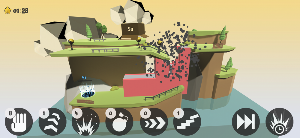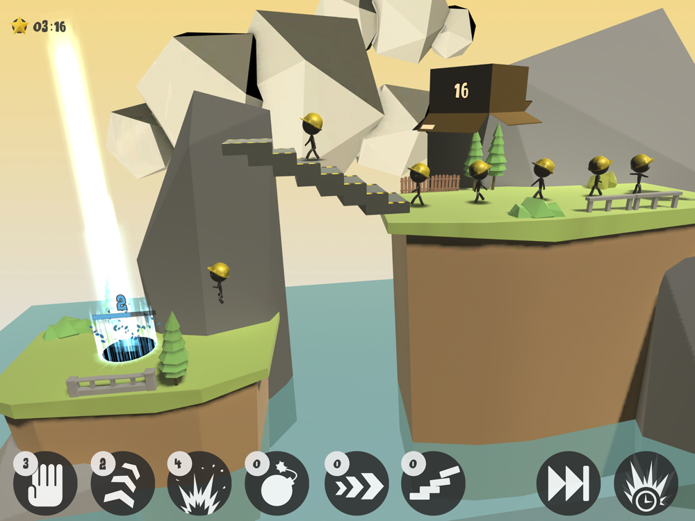 Sticklings Deluxe is a unique puzzle game with the mission to lead a herd of Stickmen into their goals by using various abilities. Like a lemming, a Stickling just walks and walks and it is your objective to correctly assign the correct task to a Stickling to lead all the others the correct path. Abilities include blocking, self destruction, jump, bomb throwing, rush and bridge building. Try to earn as much gold, silver and bronze medals as possible. Oh, and by the way, if you fail there is always the option to nuke them!