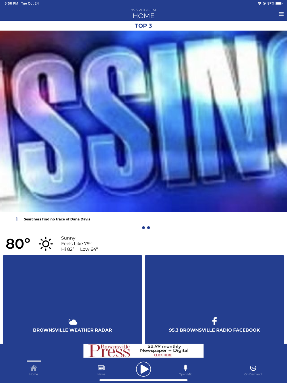 Just download and open your 95.3 Brownsville Radio app to get a live feed of all the talk shows and interact with your favorite show hosts...plus read the local news, weather, and sports anytime.