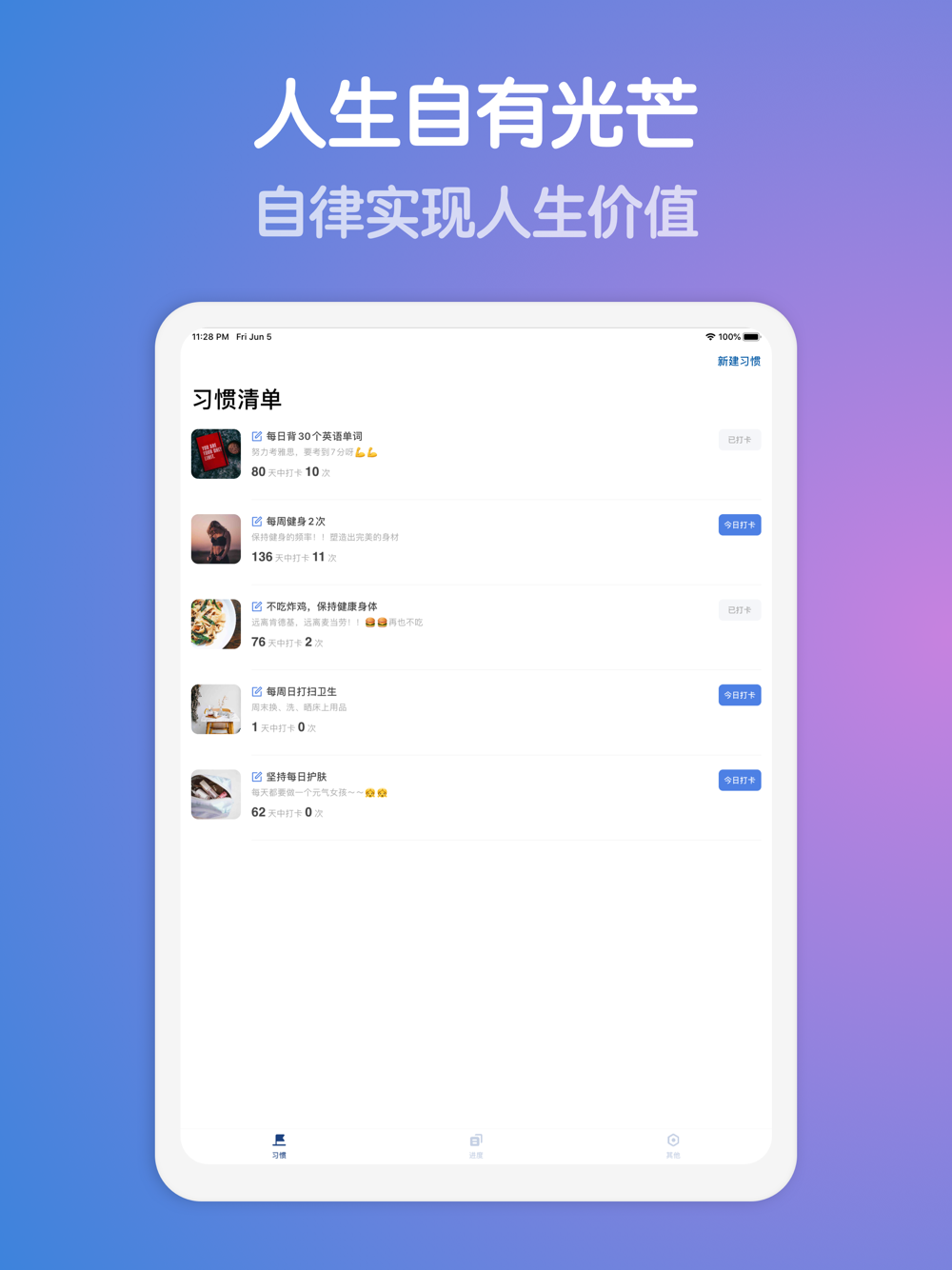 “习惯清单” 提供了帮助你养成习惯,实现自律人生的功能,当前版本包含以下功能: