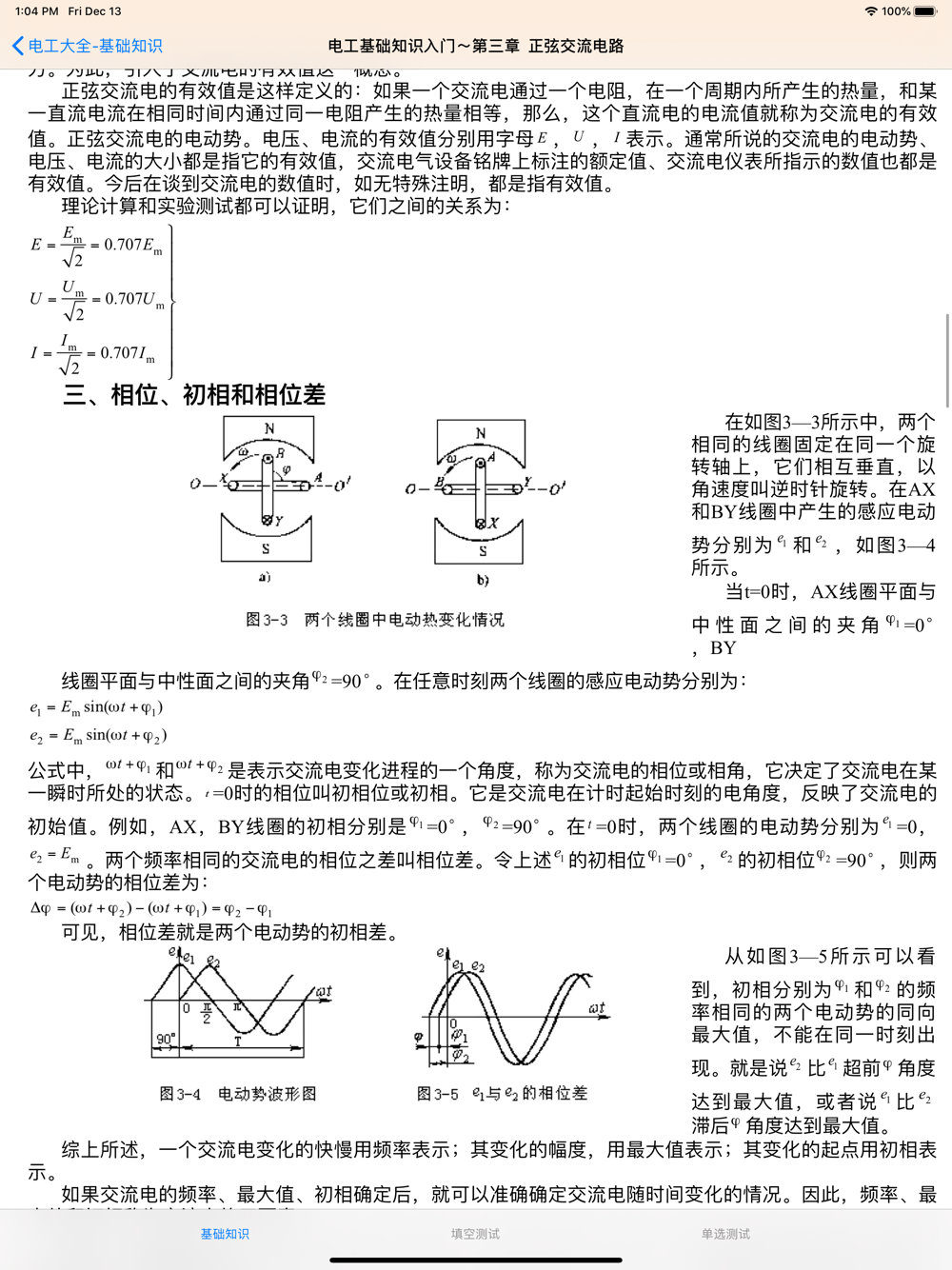 电工基础知识app是一款专门为从事机械类的人员进行电工的知识培训,电工基础知识手机版遵循由浅入深、循序渐进的知识体系,比较系统地介绍了电工技术中最常用的知识、技术。电工基础知识苹果版主要内容包括:直流电路、电磁的基本知识、正弦交流电路、变压器与三相异步电动机、简单机床电路、安全用电等内容。
