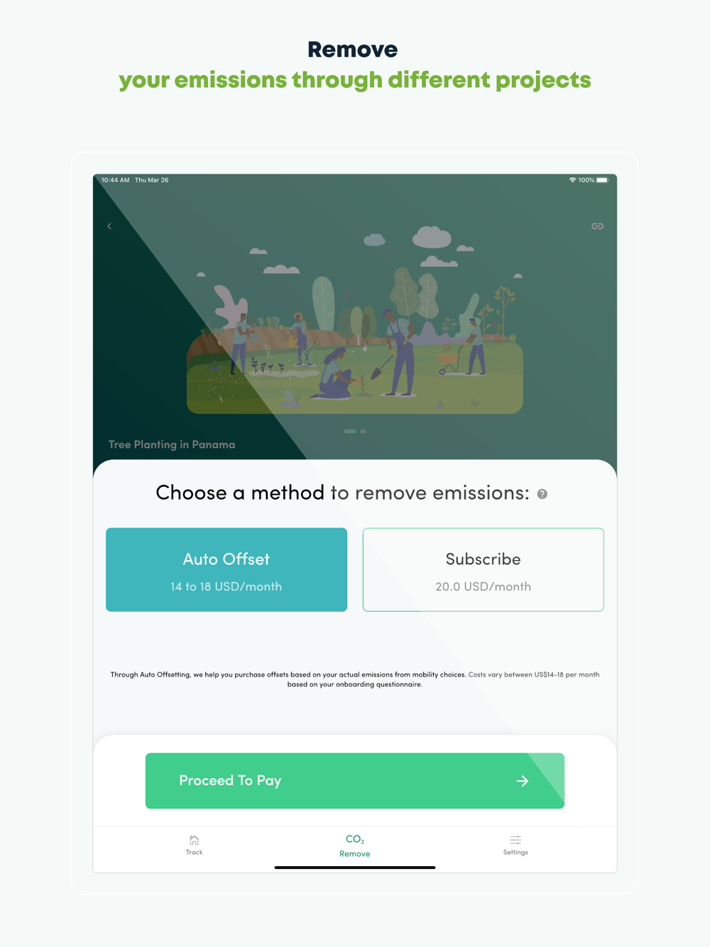 - Review your live CO2 emission information whenever you want, and see the breakdown from your different mobility choices